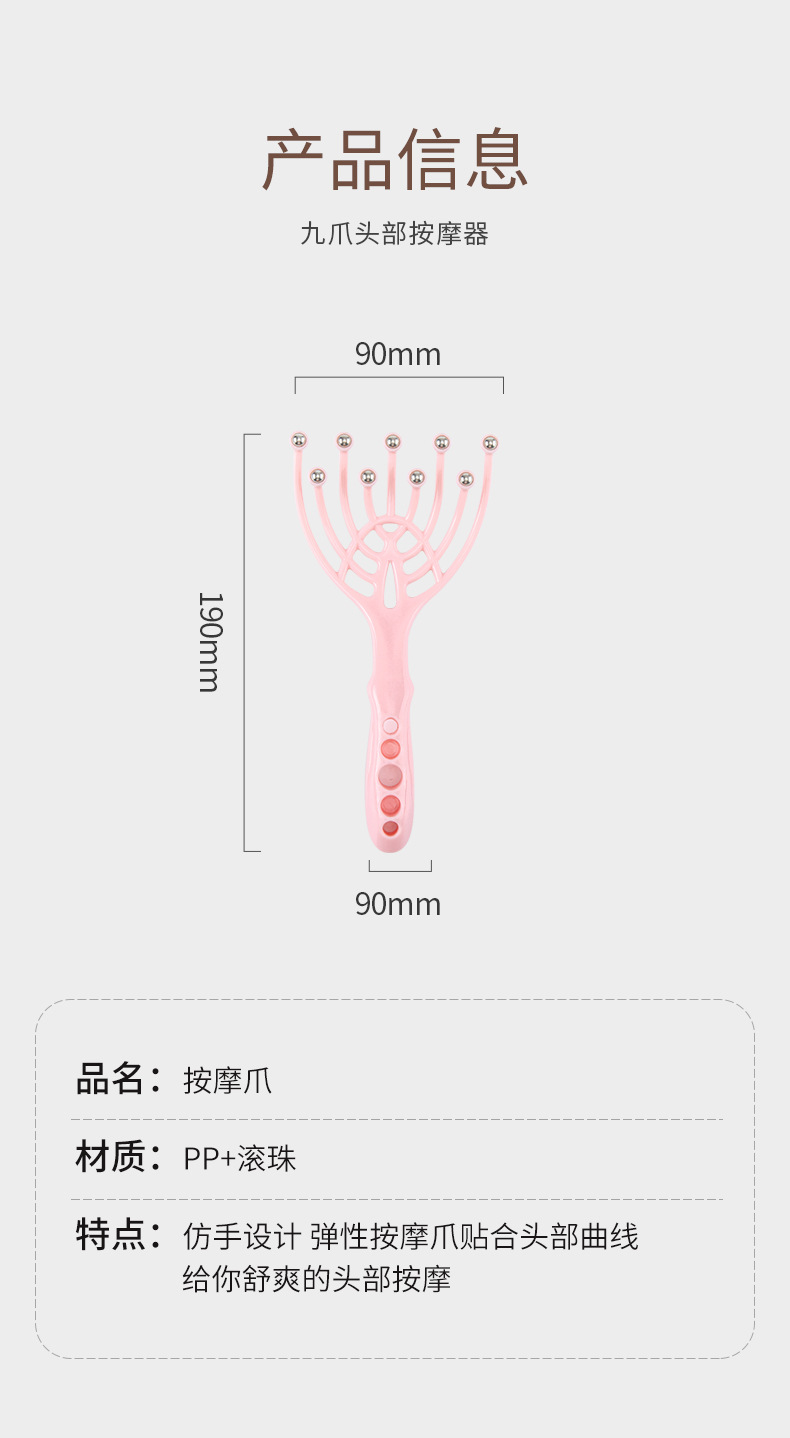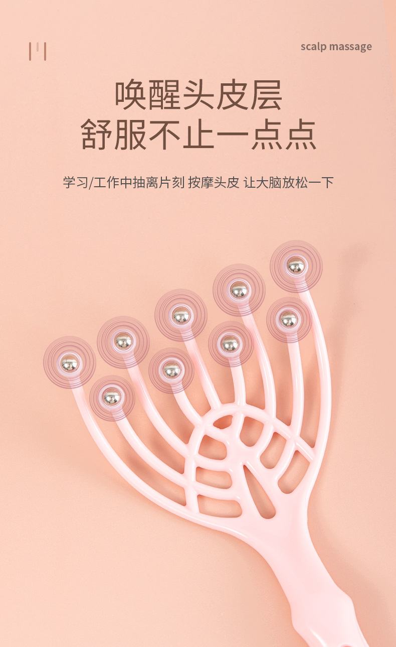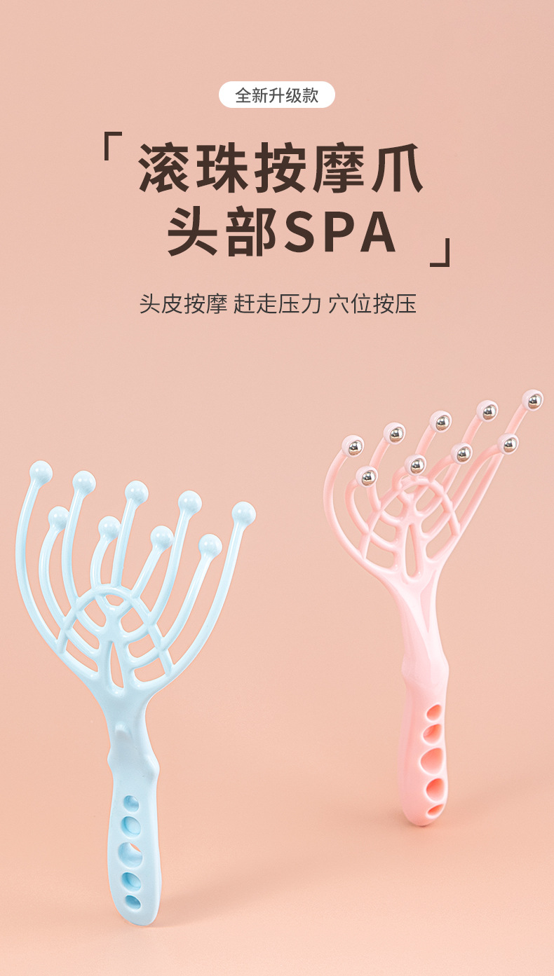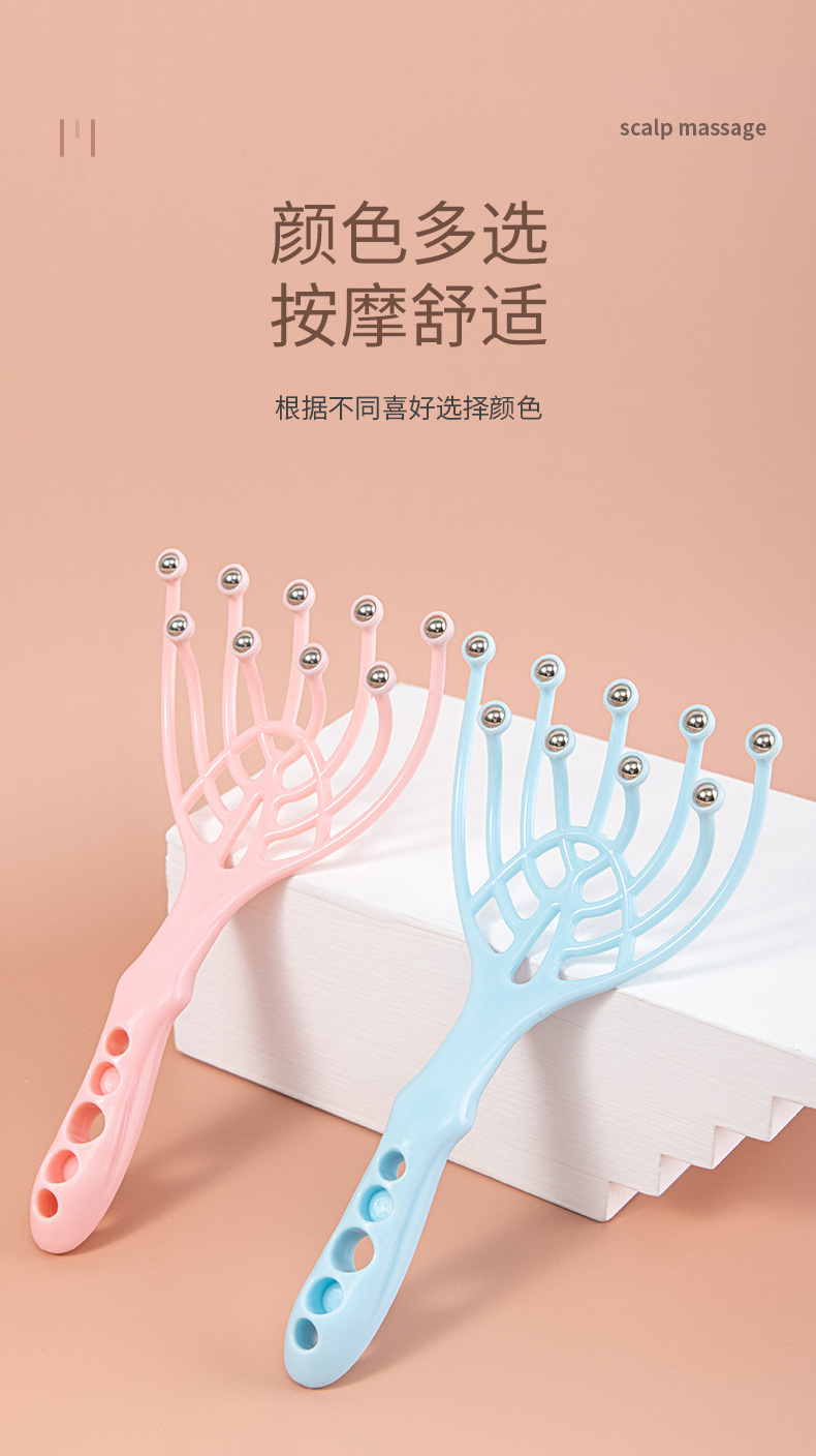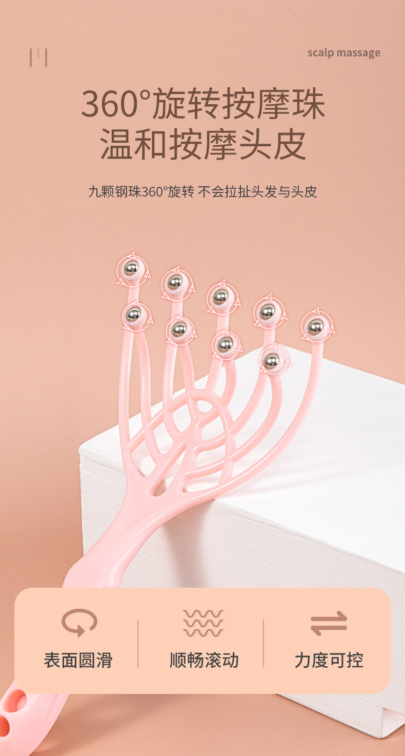 九爪头部按摩器头皮滚珠手动按摩五爪头疗放松减压抓痒挠头梳神器