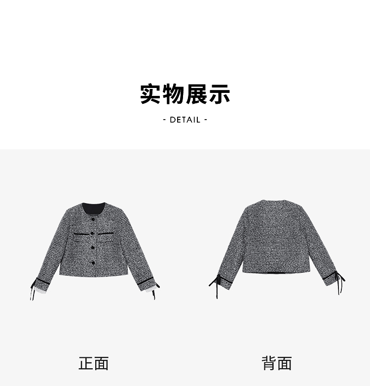 西遇短款小香风外套女冬季新款袖口蝴蝶结拼接设计上衣D0043945