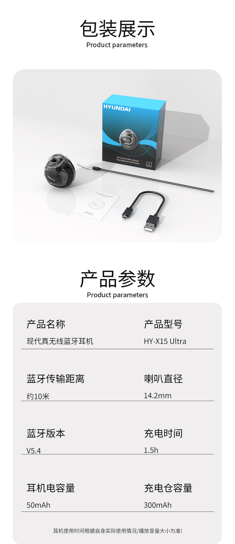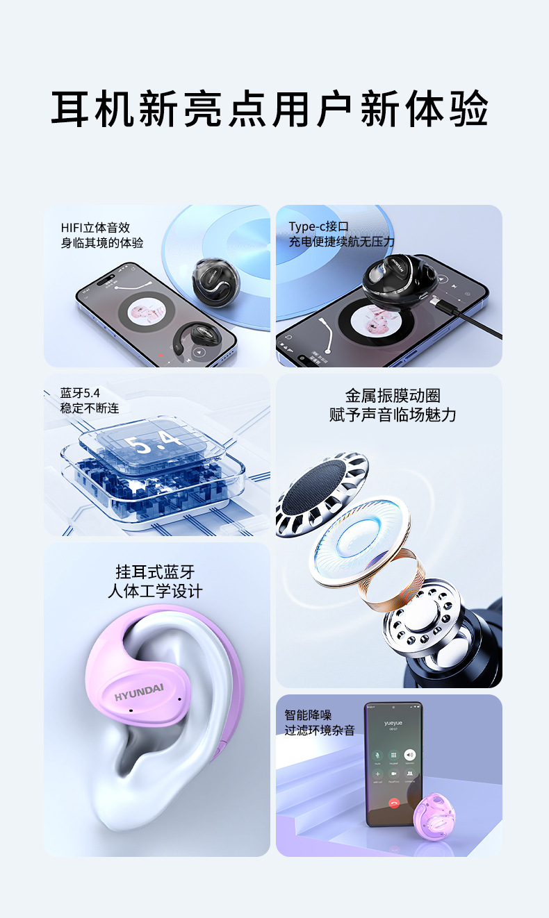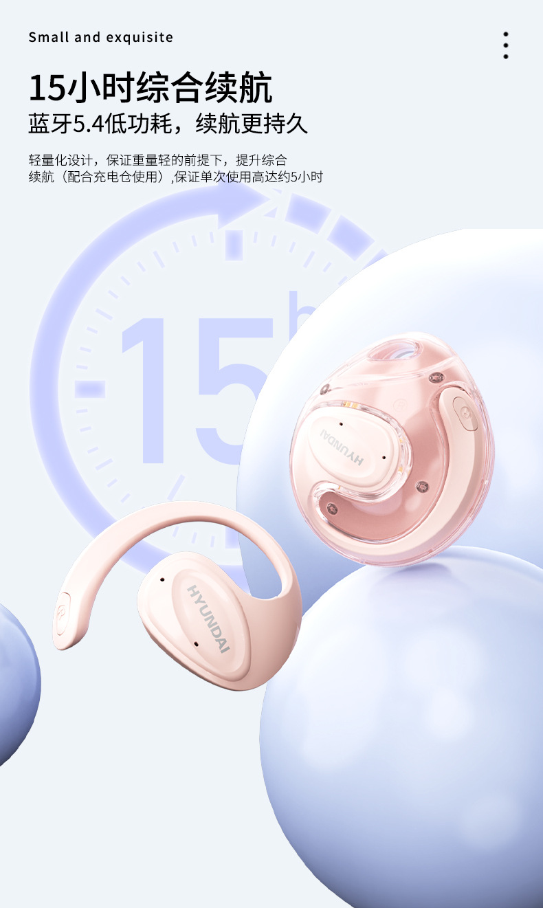 现代HY-X15Ultra二代小椰球 TWS挂耳运动蓝牙耳机 解放双耳畅听HiFi音质 无线不入耳低延迟