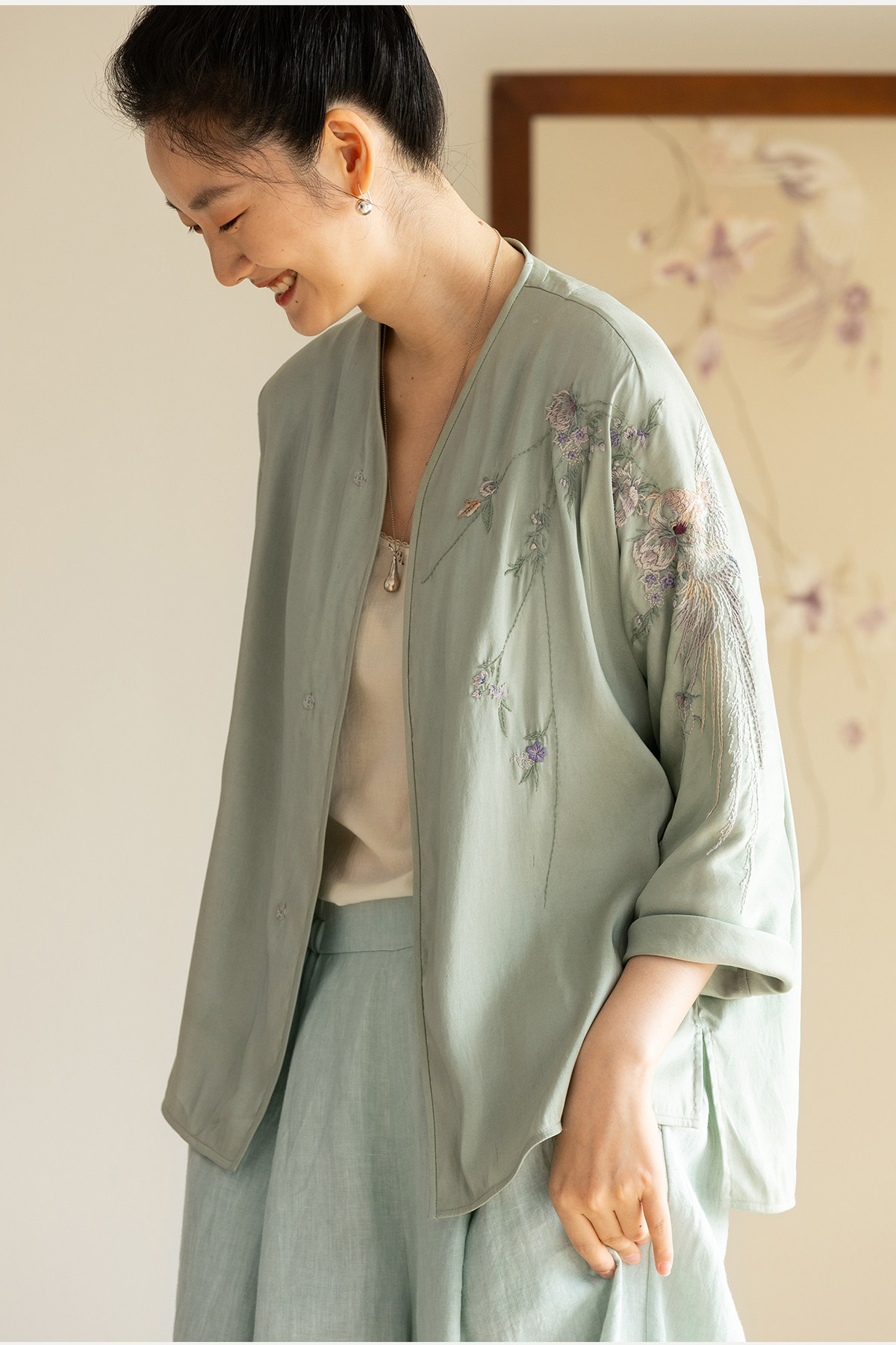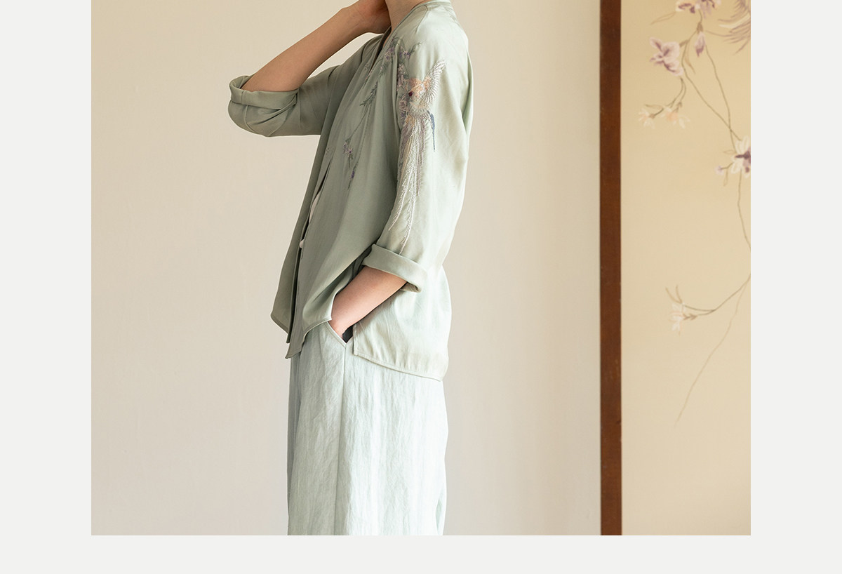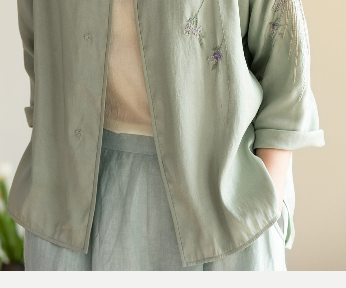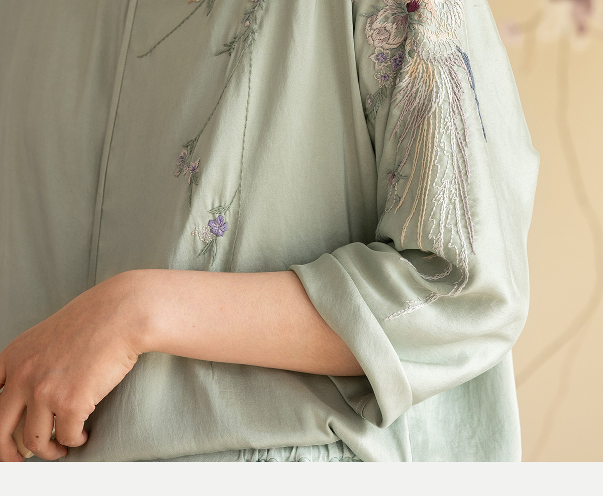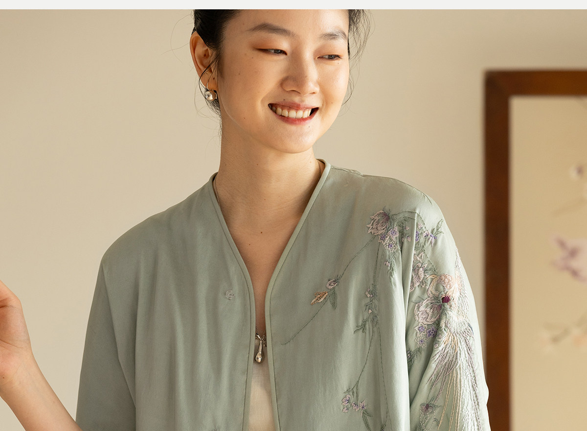 牧衣游原创 22姆米重磅双宫绸重工手绣外套古朴禅意真丝开衫 棠落