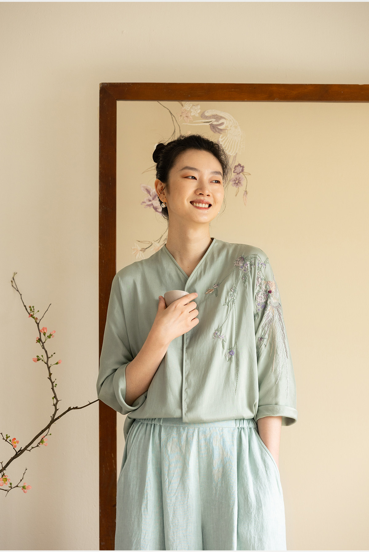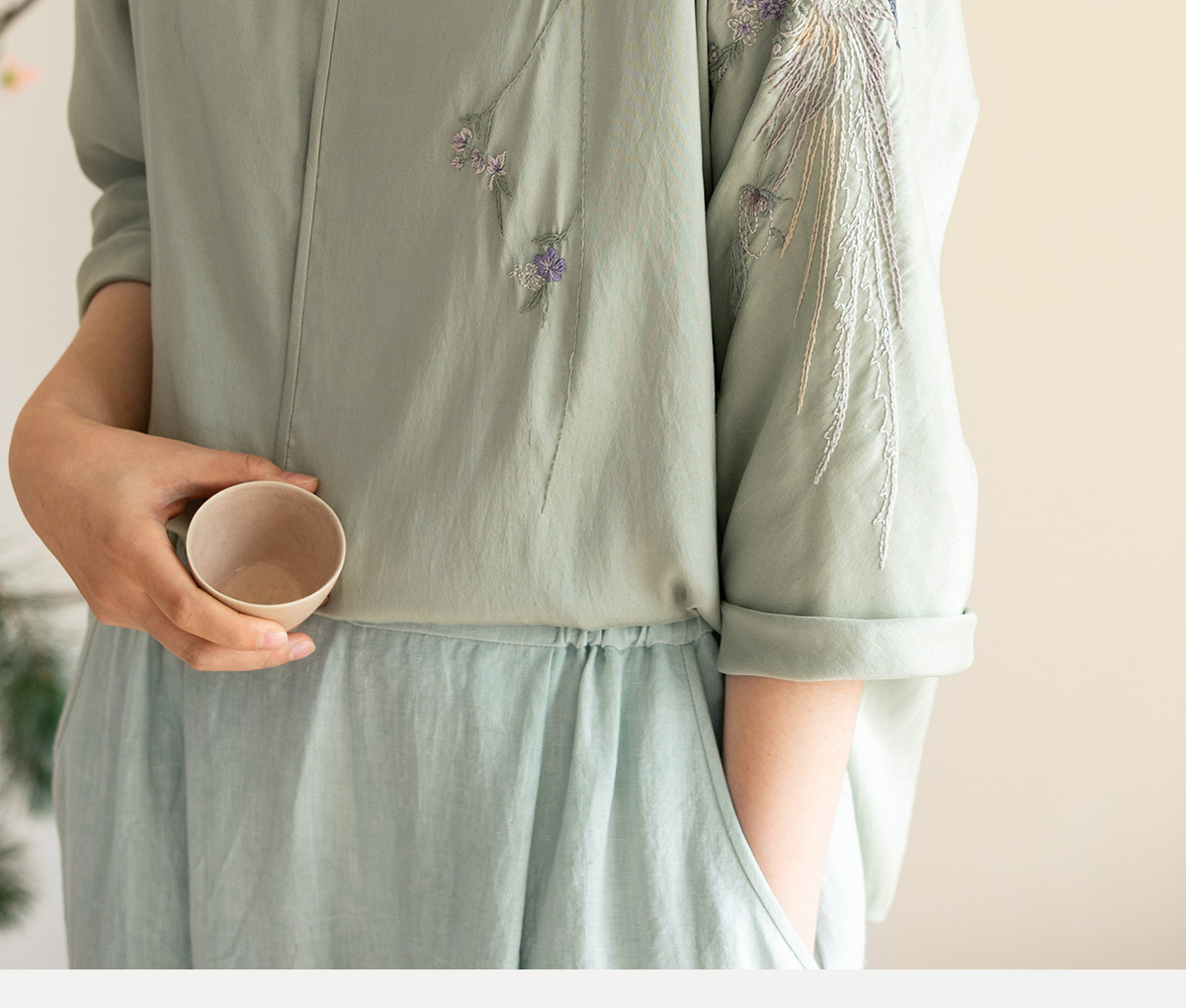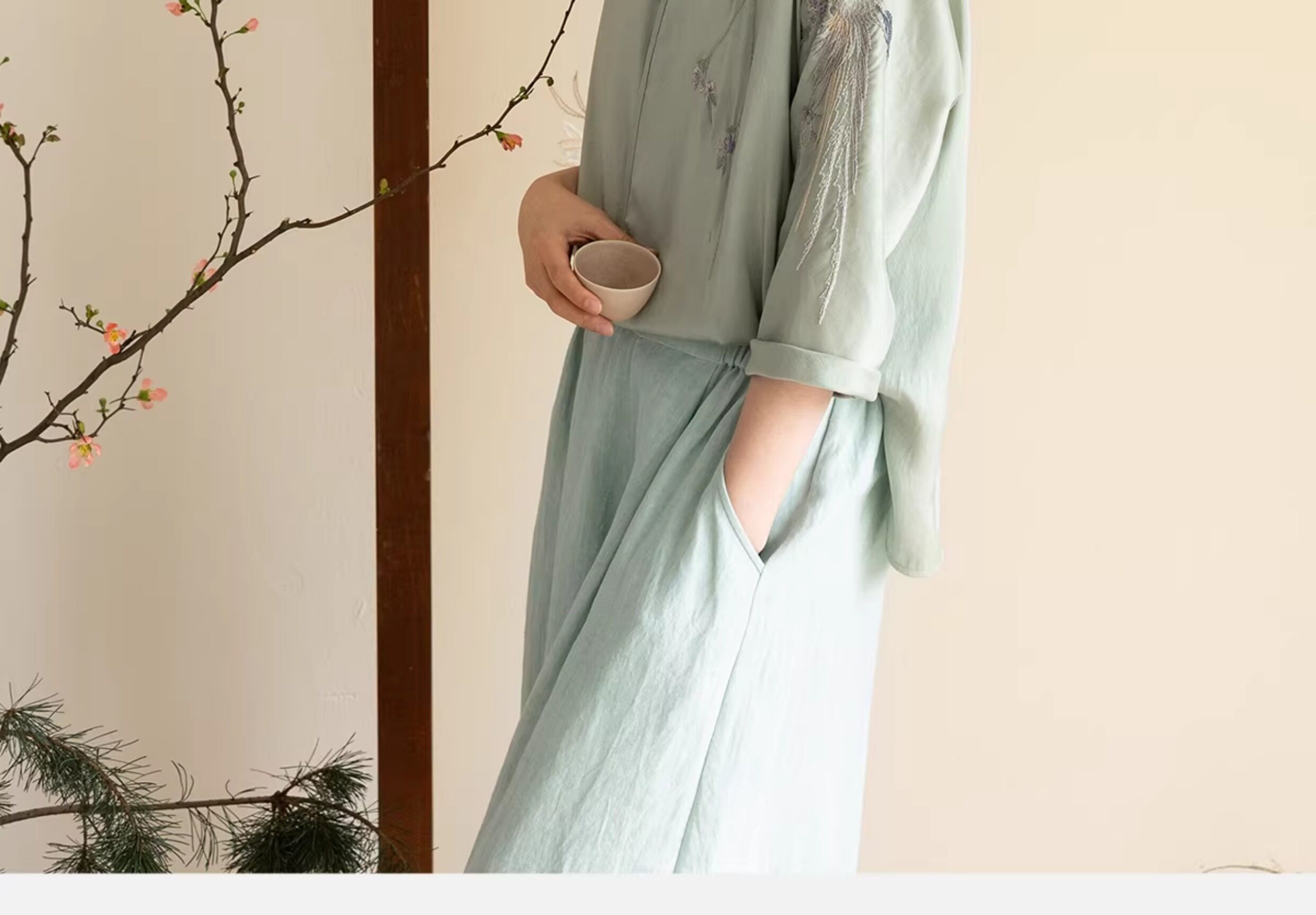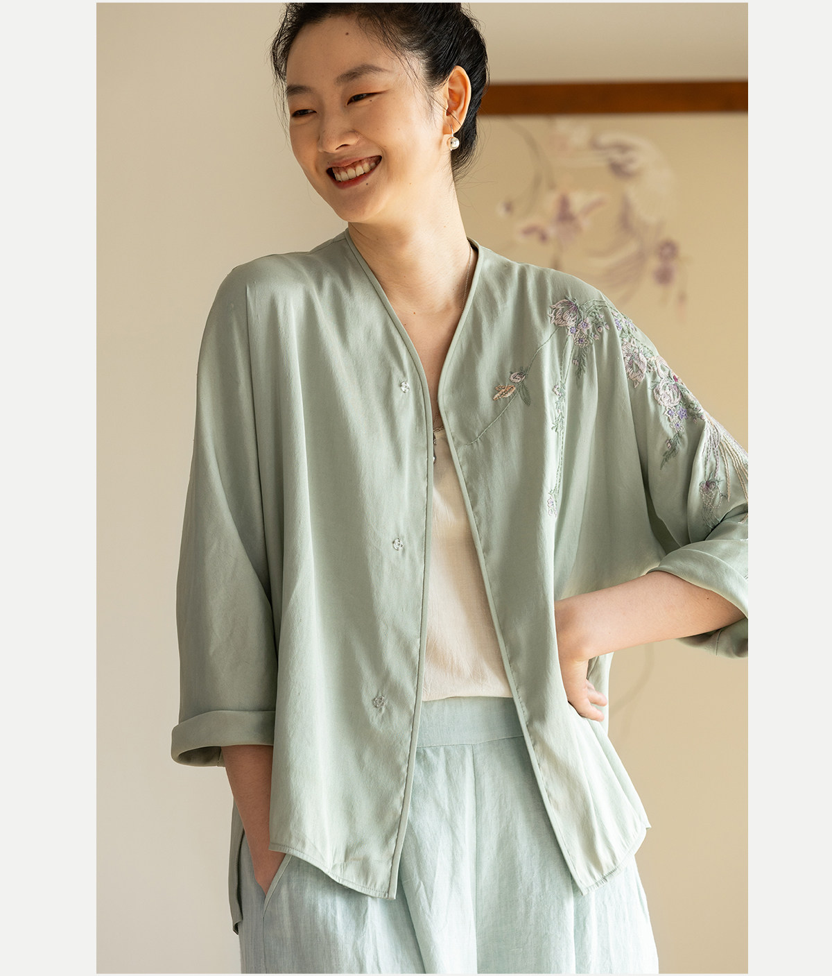 牧衣游原创 22姆米重磅双宫绸重工手绣外套古朴禅意真丝开衫 棠落