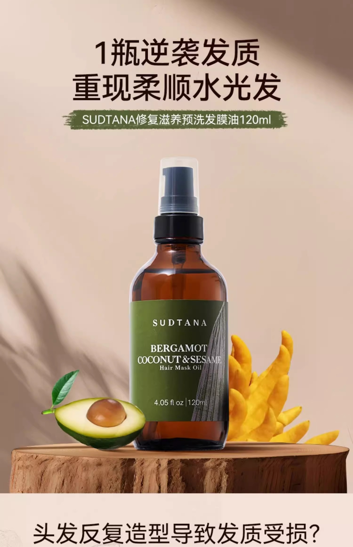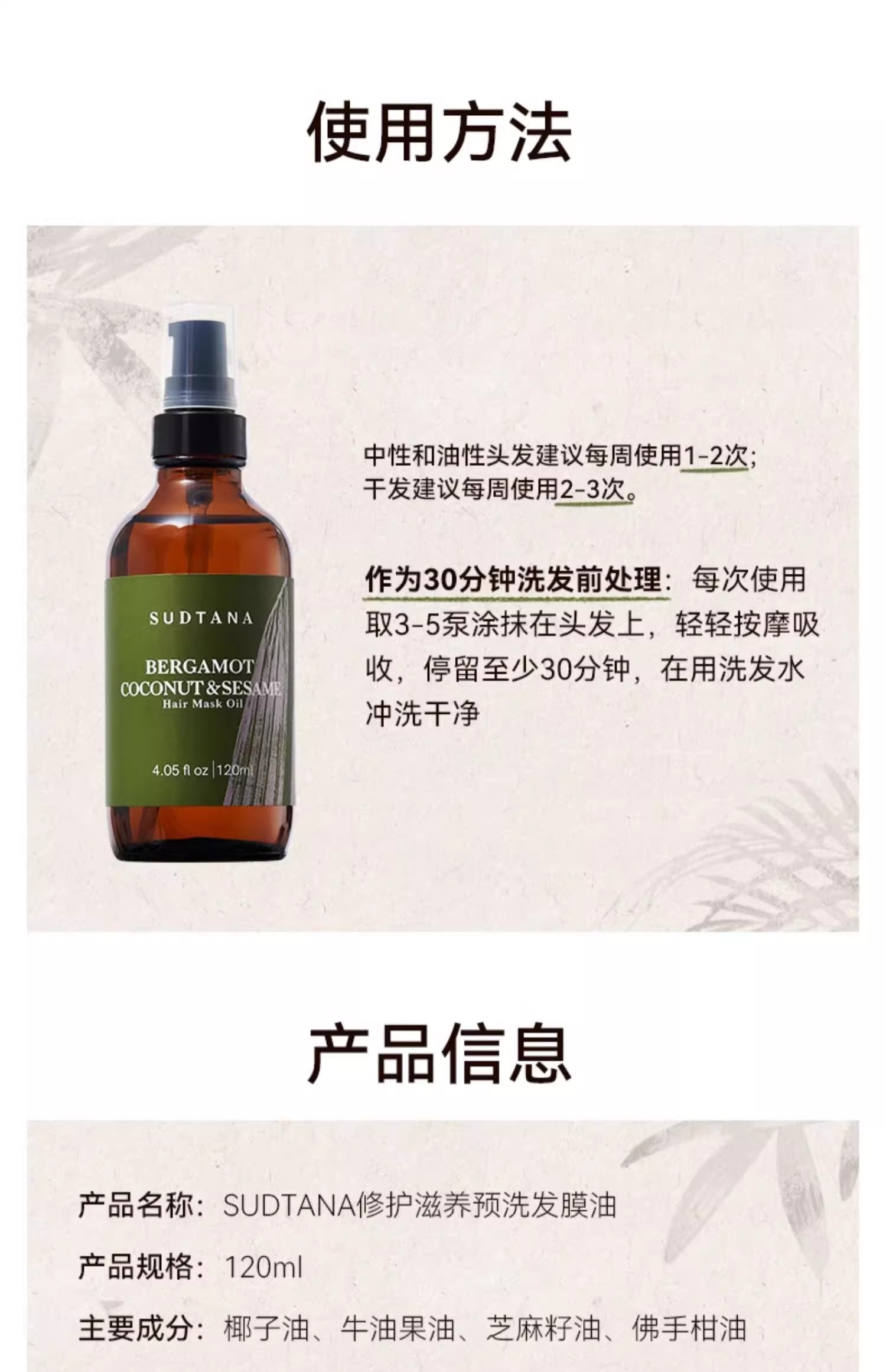 SUDTANA佛手柑椰子修复滋养预洗发油120ml 章小蕙推荐