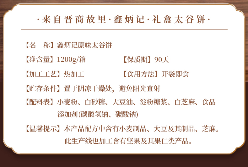 鑫炳记原味太谷饼礼盒1200g山西特产零食小吃点心传统糕点送礼