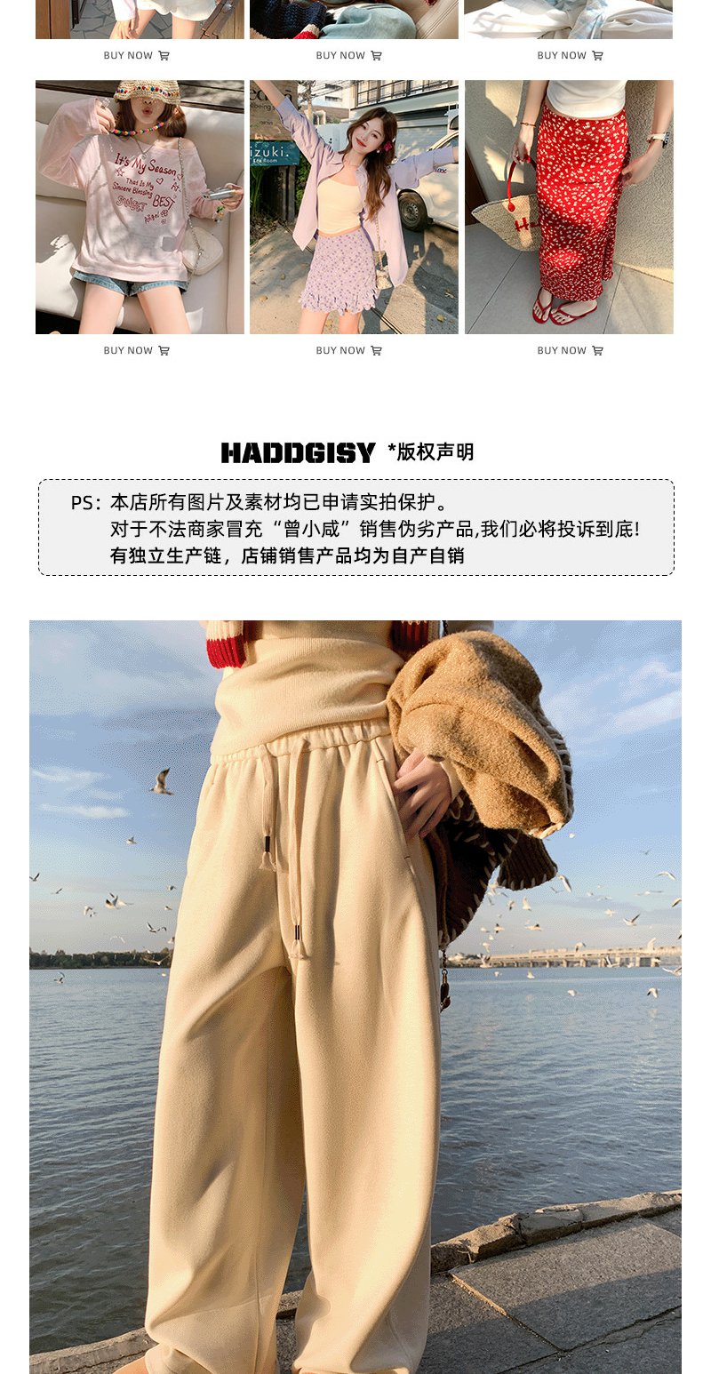 <曾小咸推荐>3.2现货秒杀!微信超特价!韩系抽绳高腰直筒休闲裤(加绒) 日常199.99 立减110 秒杀89.99!