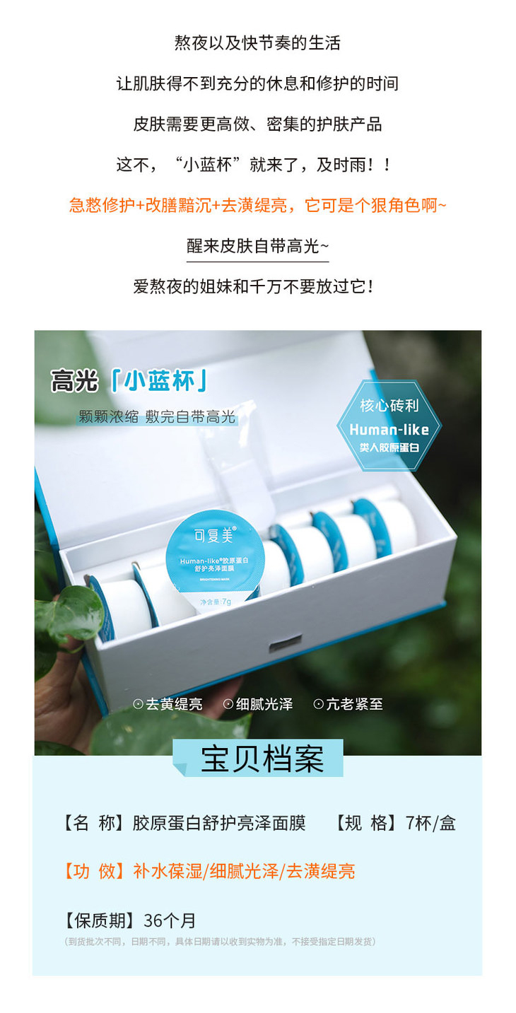 商品名称:【新品】可复美小蓝杯面膜胶原蛋白舒护亮泽面膜*7
