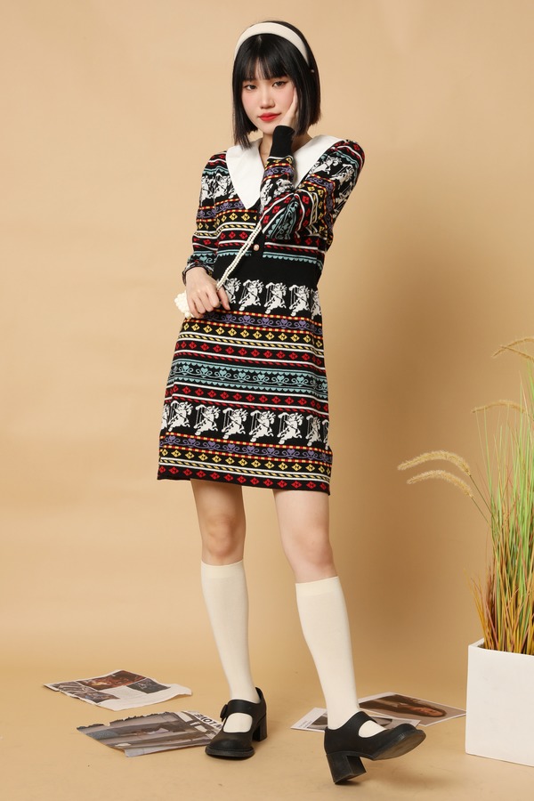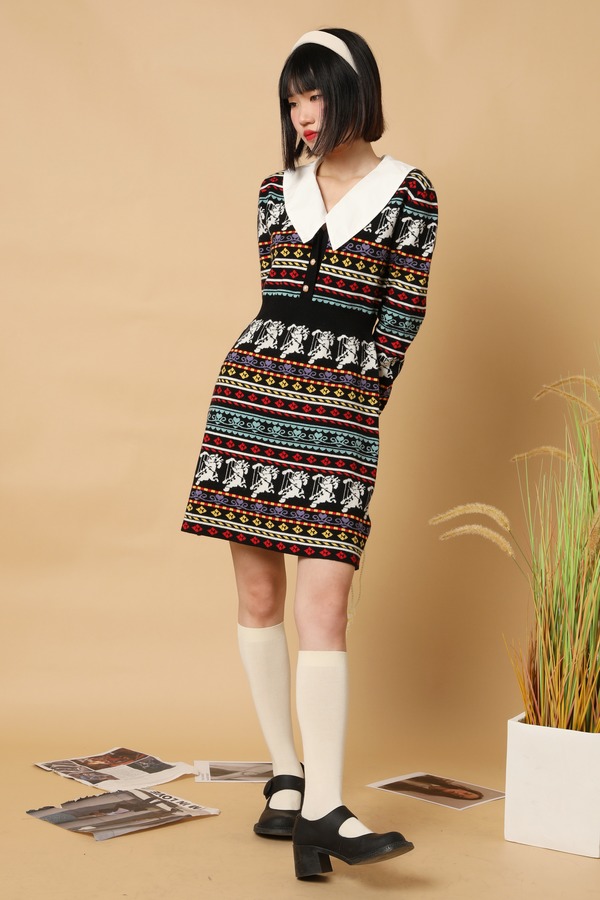 Stay2Weeks 法式复古提花针织连衣裙(不含领子) 15224
