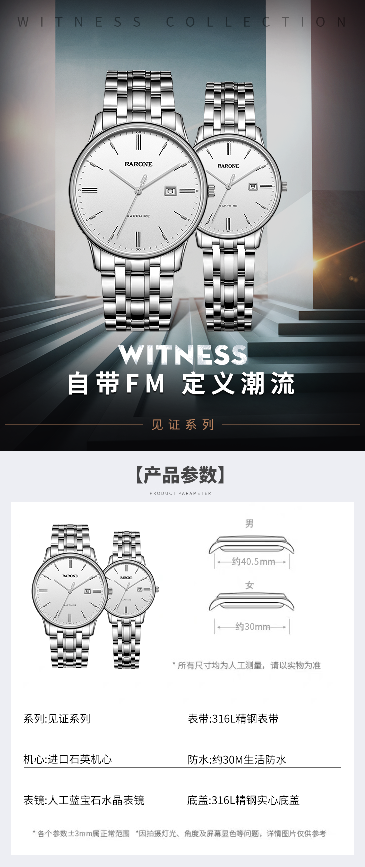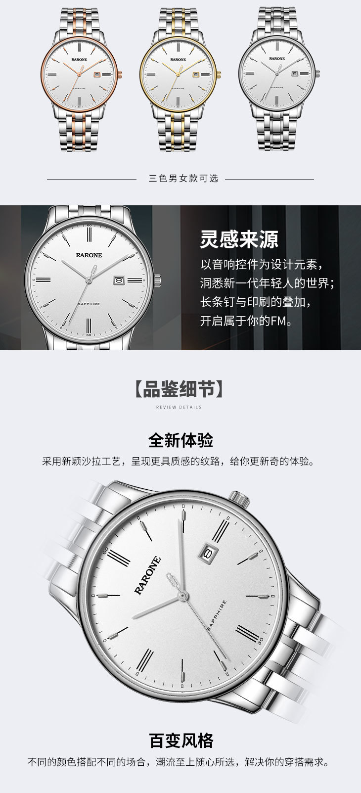 RARONE雷诺表高光系列石英对表83109