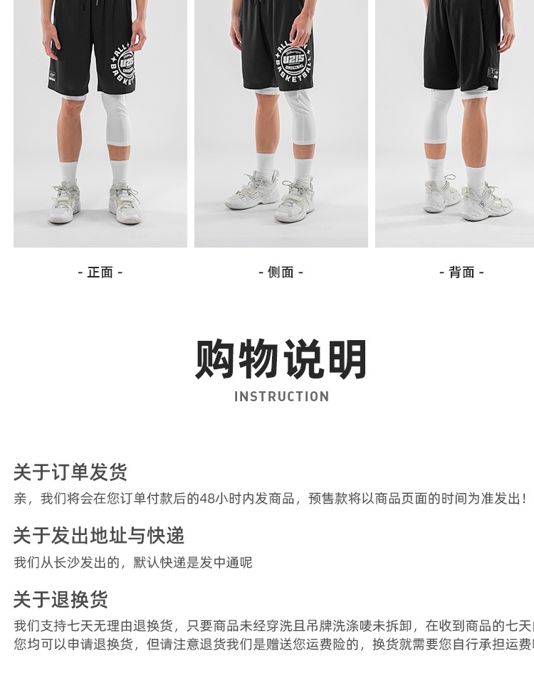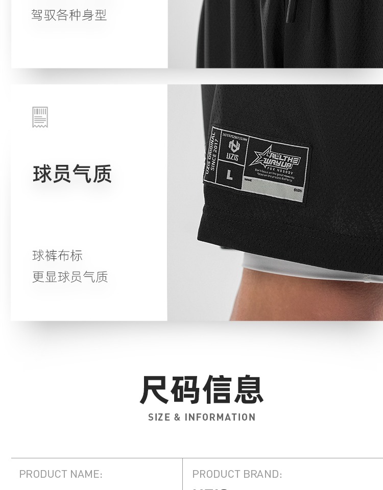 无界 UZIS篮球短裤男夏季网眼速干五分球裤美式复古运动裤[古典]