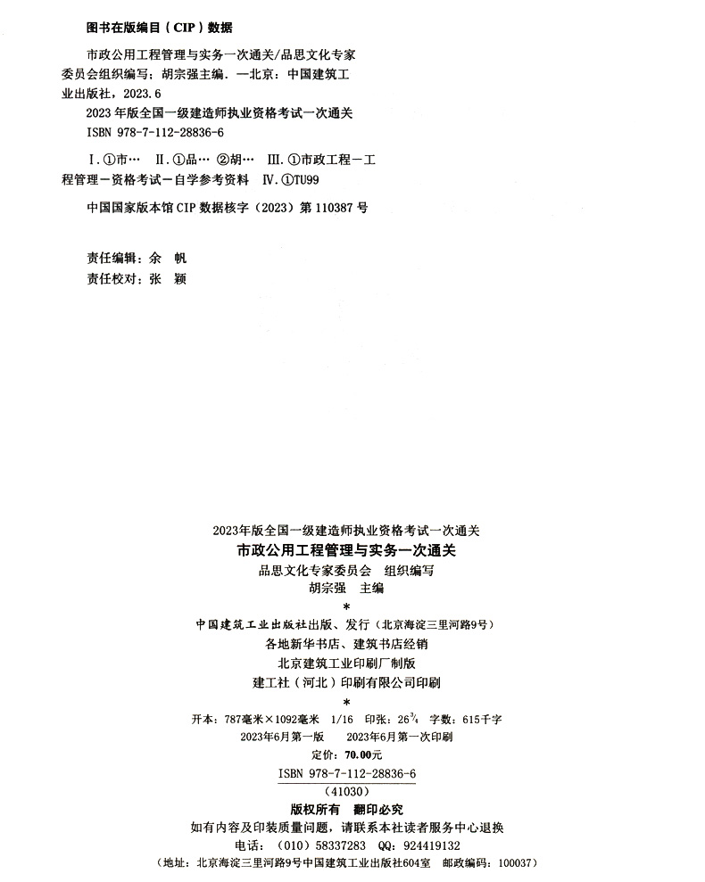 书名:2023年一级建造师市政公用工程管理与实务一次通关