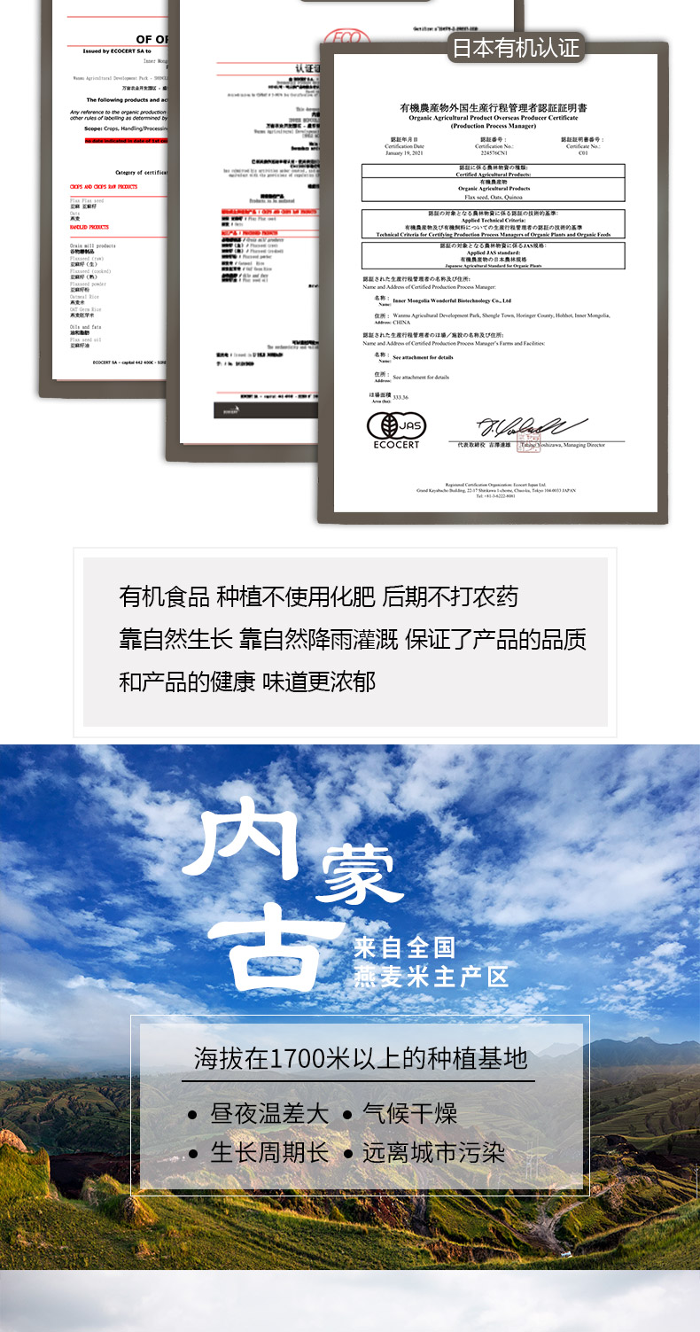 有机全胚芽燕麦米 内蒙高原有机种植500g/袋 【京东快递送货上门】