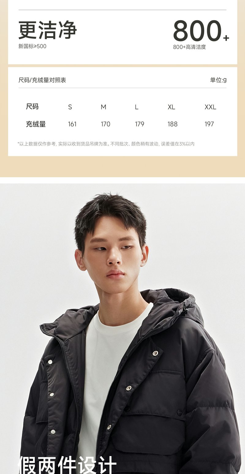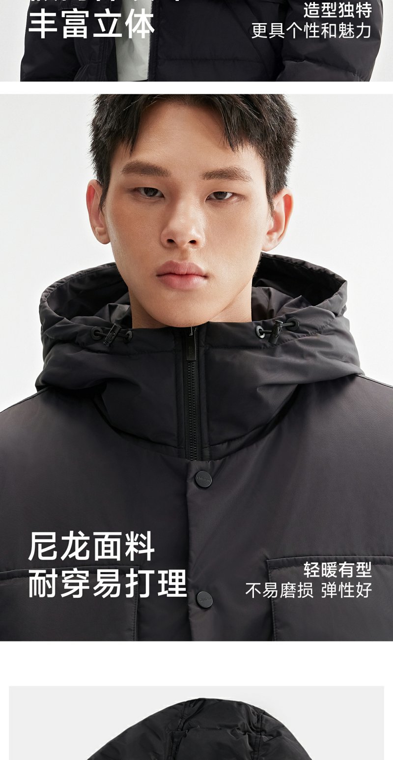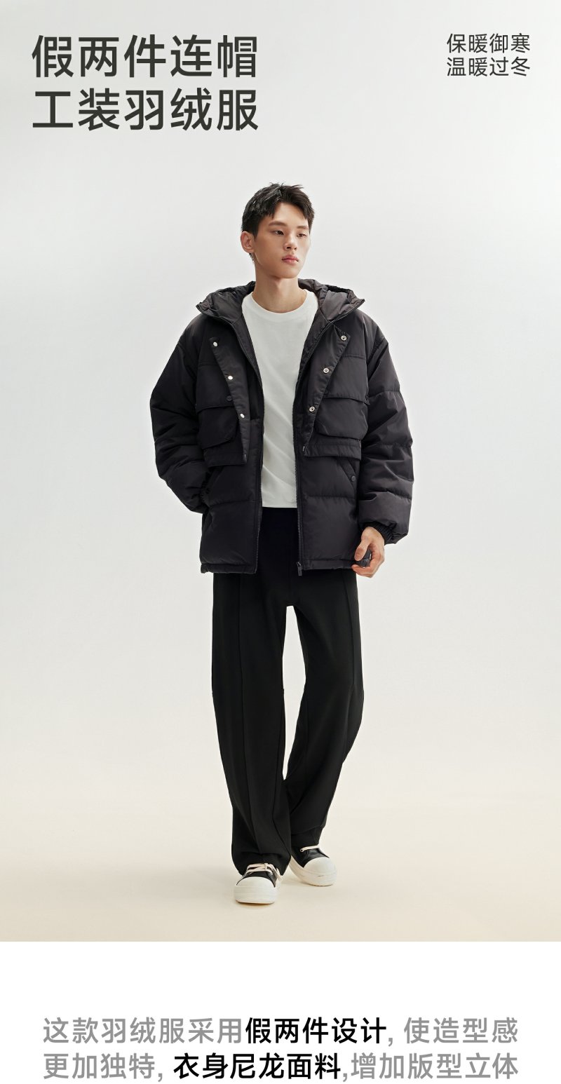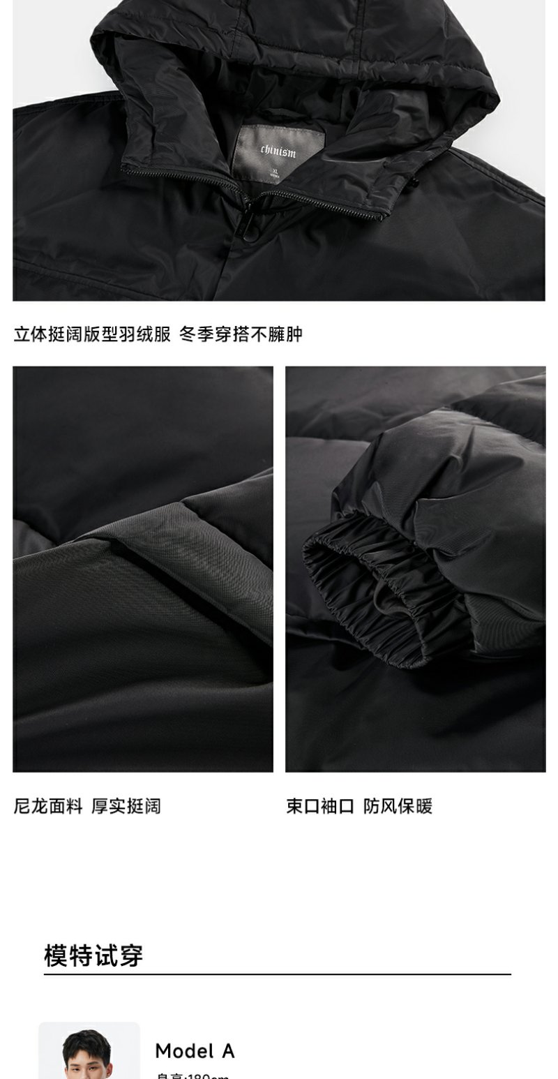 CHINISM赤尘 黑色连帽工装羽绒服男冬季新款美式保暖加厚男士外套 商品图3