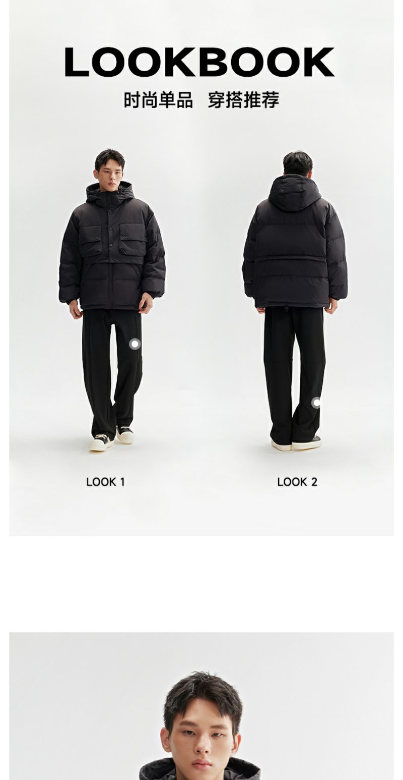 CHINISM赤尘 黑色连帽工装羽绒服男冬季新款美式保暖加厚男士外套 商品图2
