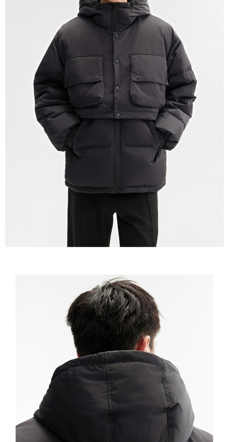CHINISM赤尘 黑色连帽工装羽绒服男冬季新款美式保暖加厚男士外套 商品图4