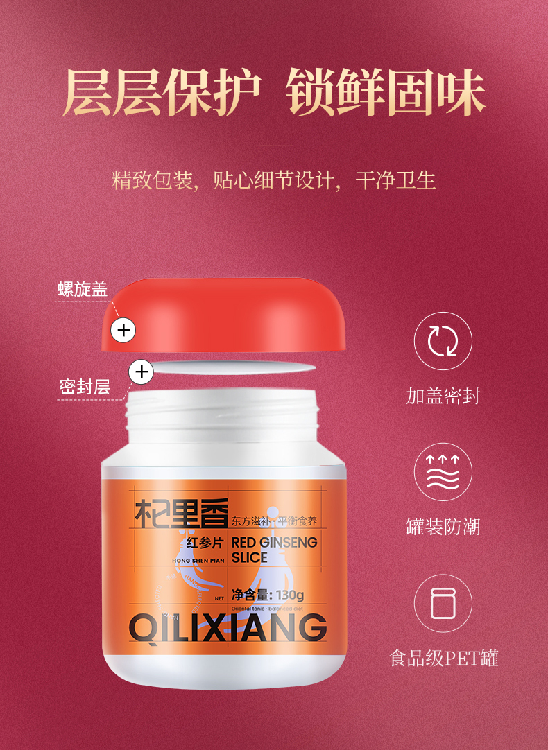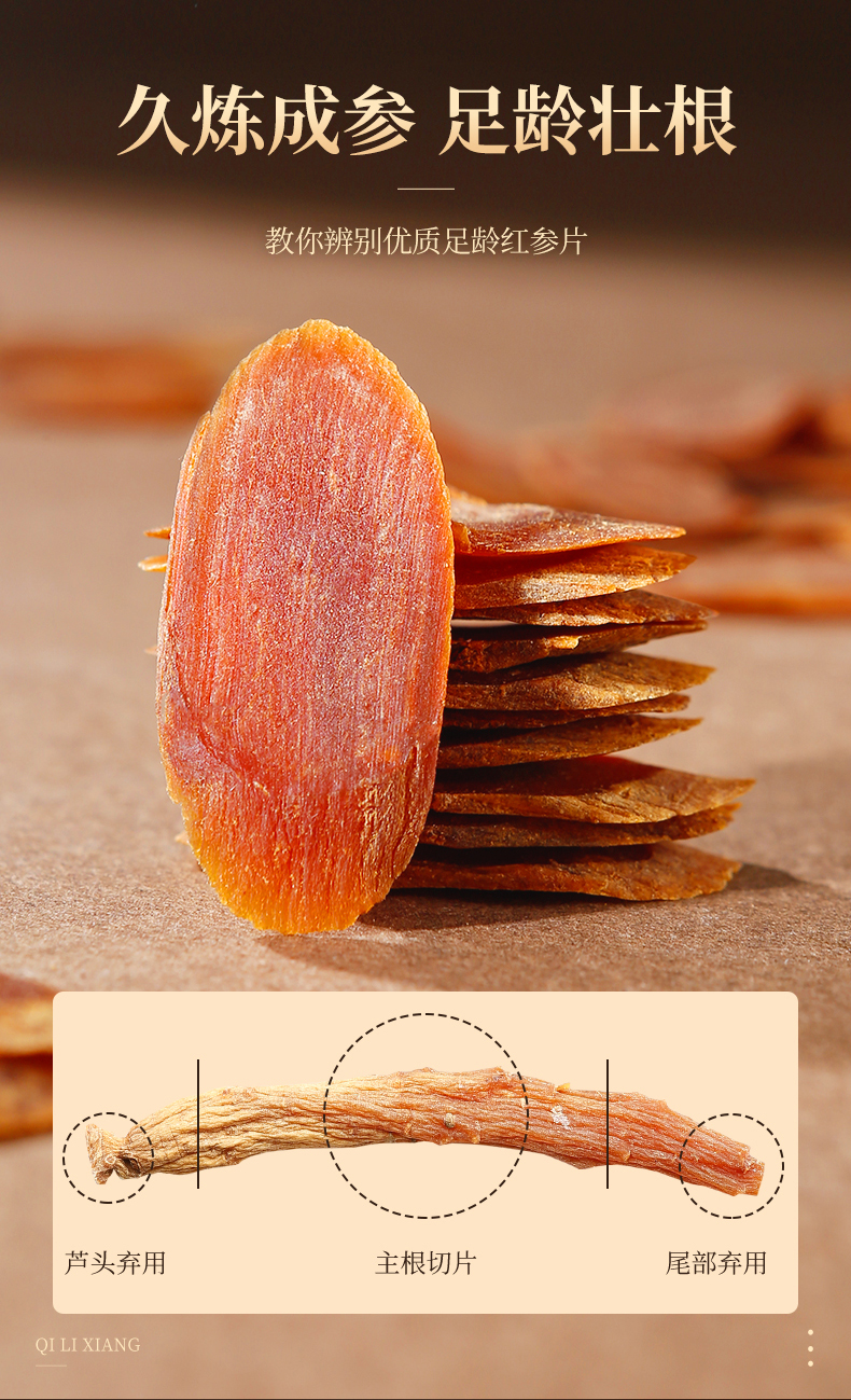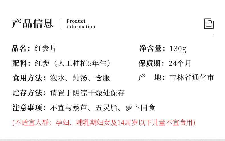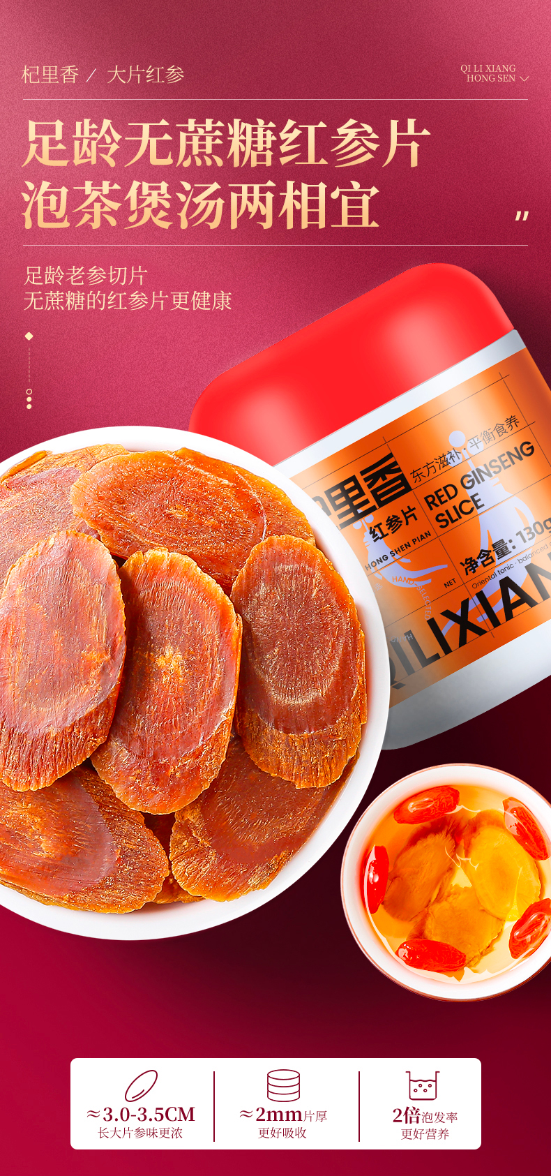 【杞里香红参片130g(3.0-3.5cm)】长白山高丽参片干货整支新鲜人参粉足龄红参片 泡茶煲汤两相宜