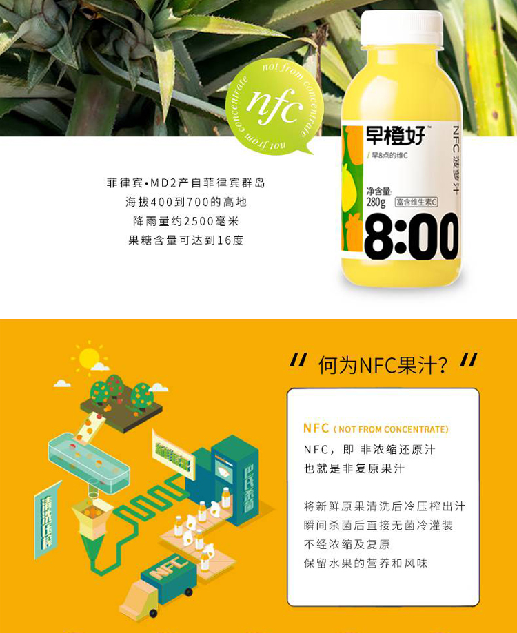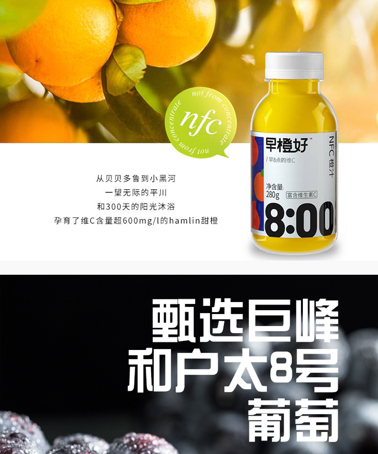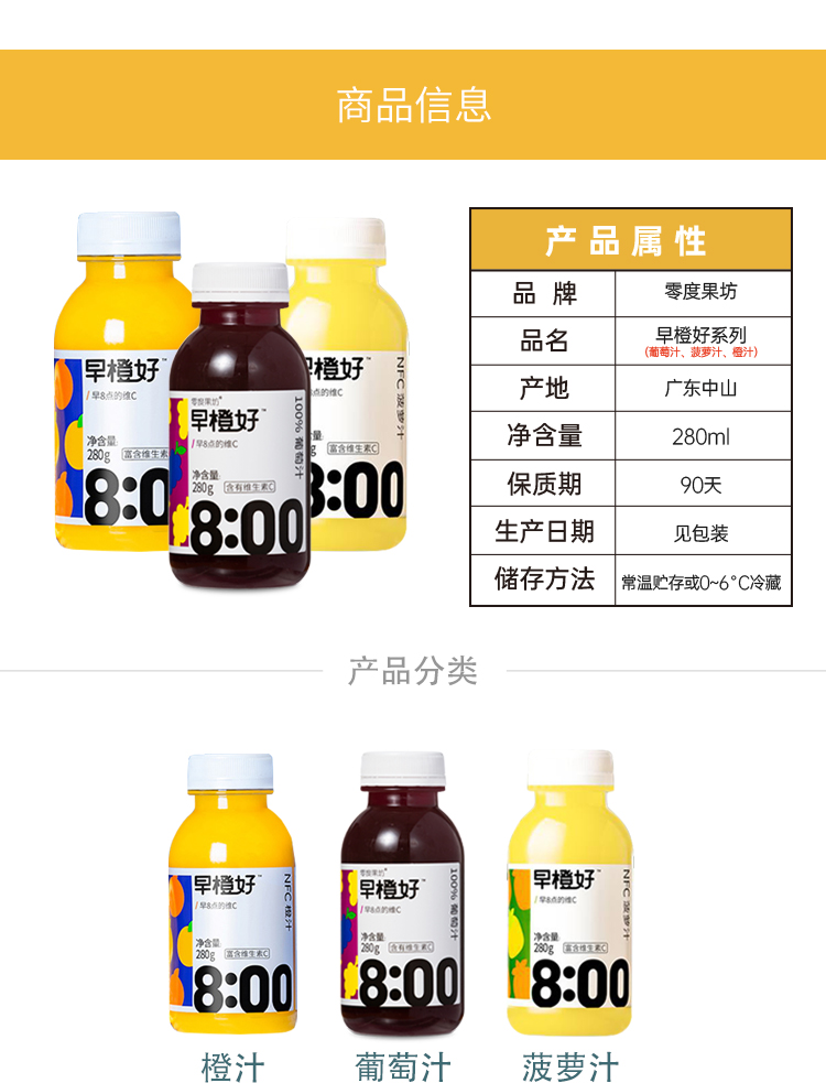 【已下架】积分换购 | 零度果坊 NFC早橙好纯果汁饮料 鲜榨橙汁\葡萄汁\芭乐汁\苹果汁280ml*8瓶[福利品]