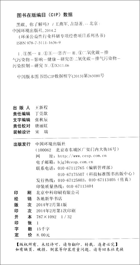 黑碳,你了解吗?环保公益性行业科研专项经费项目系列丛书 王燕军 吉喆 环境保护 9787511116369