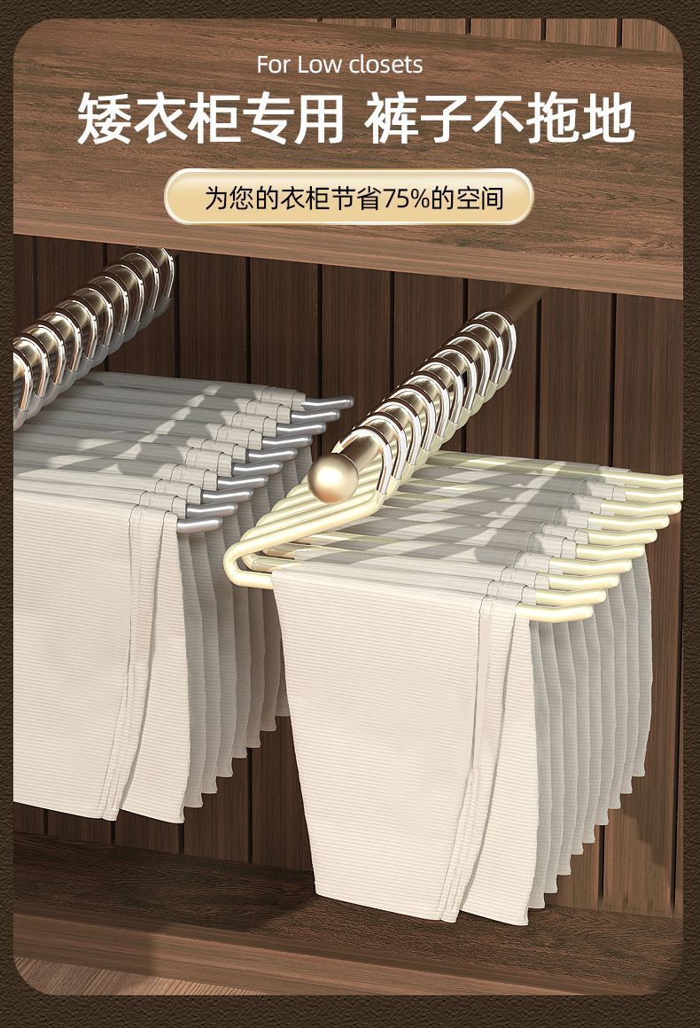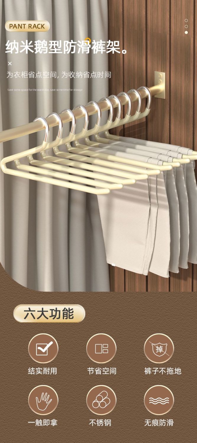 「10支装!不锈钢鹅型裤架」无痕防滑家用衣柜挂裤子收纳整理裤夹子z形2字衣架