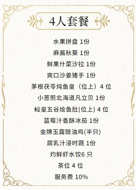 4人套餐抢购价:498元(门市价:1471元)