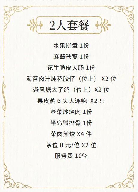 ◆ 套餐包含菜品需1次消费完毕,不可拆分不同日期享用,部分菜品若因时令或其他不可抗因素导致无法提供,将视实际情况以等价菜品替换