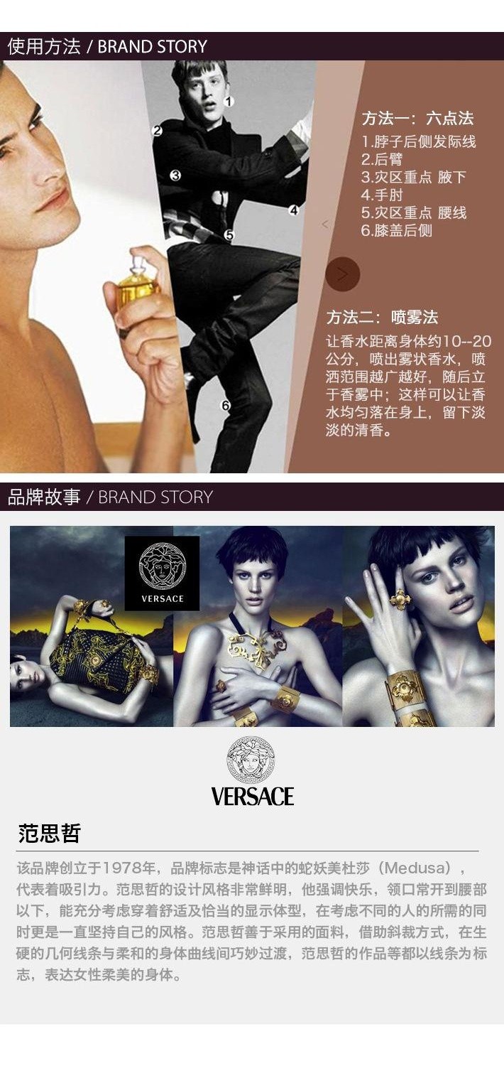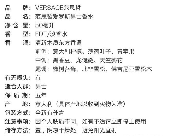 VERSACE 范思哲 爱罗斯男士EDT淡香水 50ml 爱神之水的引诱 意大利