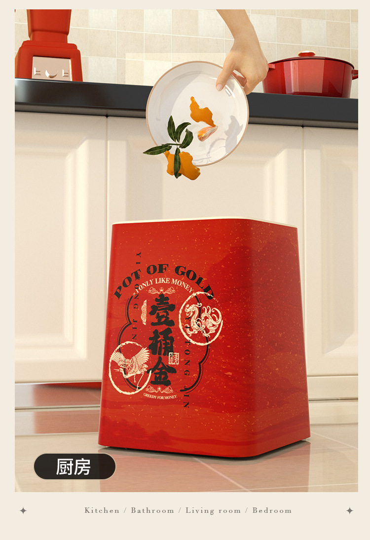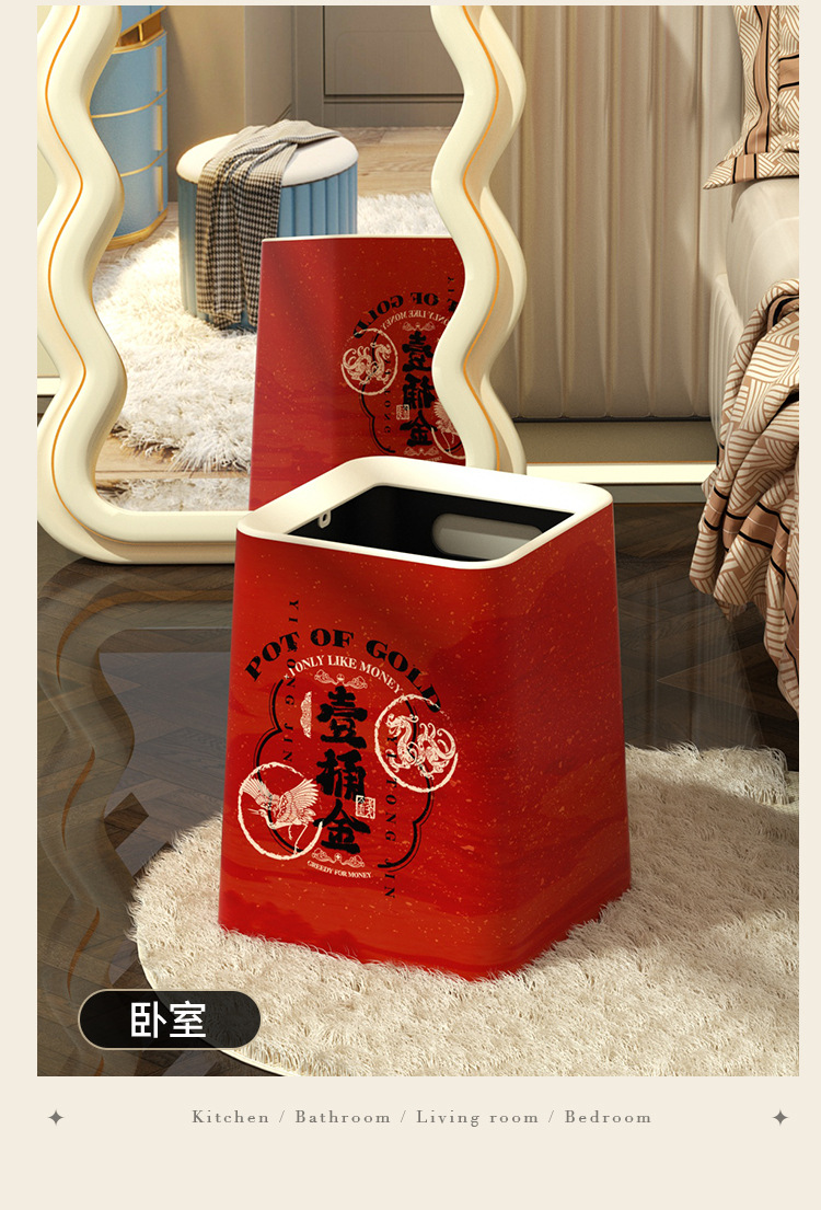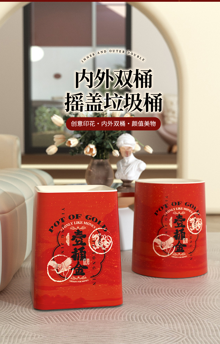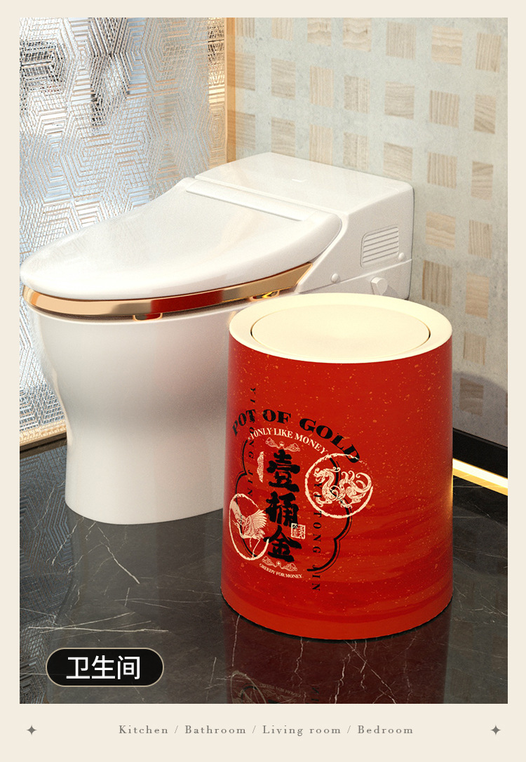 「ins风高颜值!大尺寸」新年垃圾桶 居家日用厨房卧室客厅带盖纸篓厕所大号厨房收纳整理垃圾筒