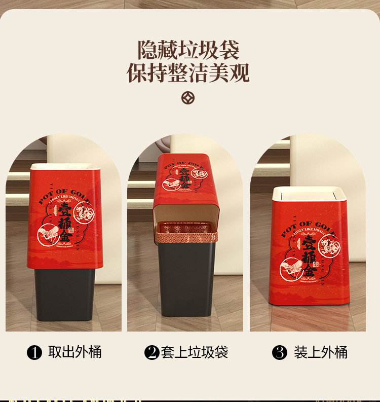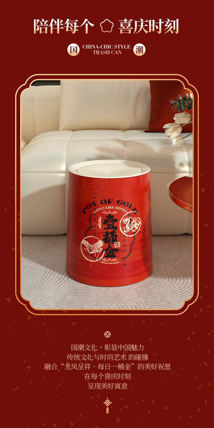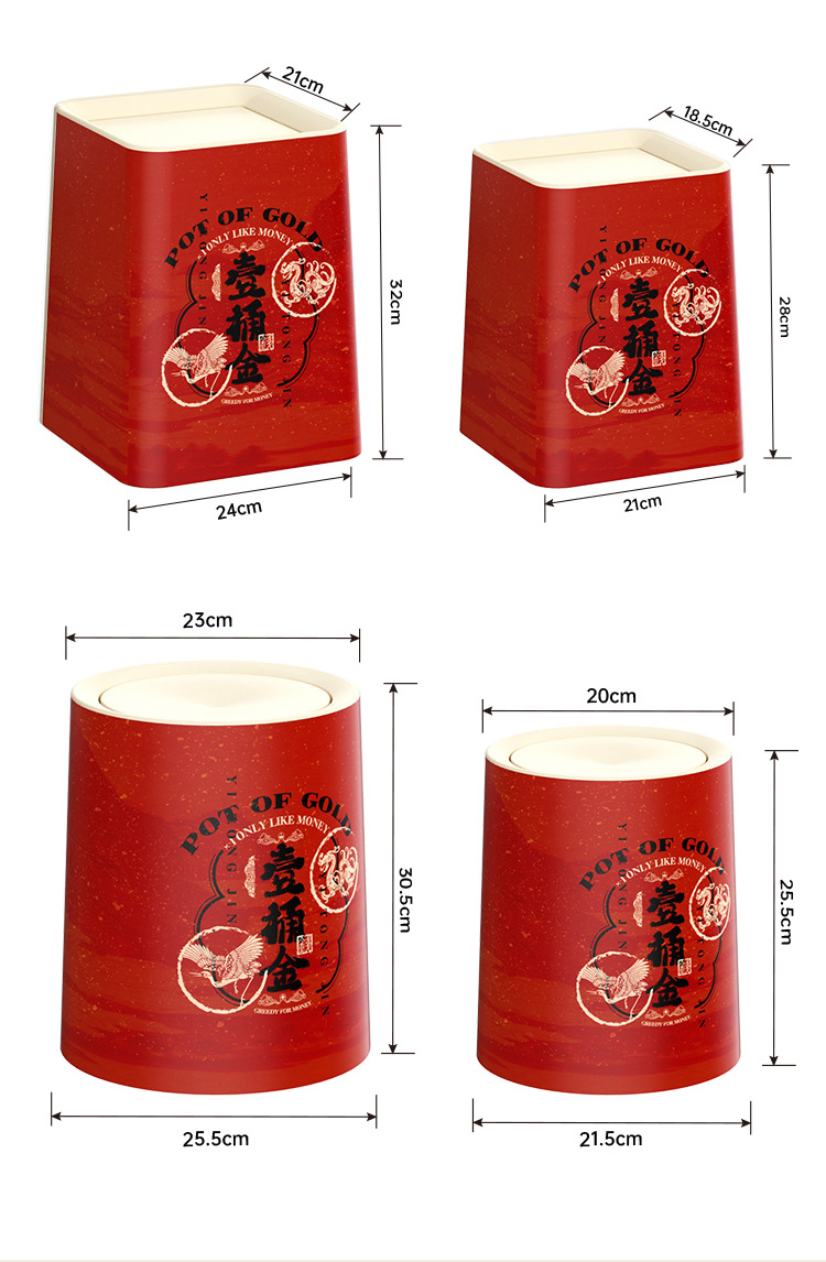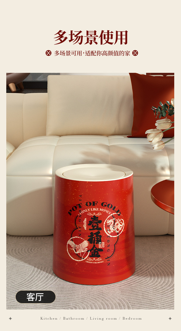 「ins风高颜值!大尺寸」新年垃圾桶 居家日用厨房卧室客厅带盖纸篓厕所大号厨房收纳整理垃圾筒