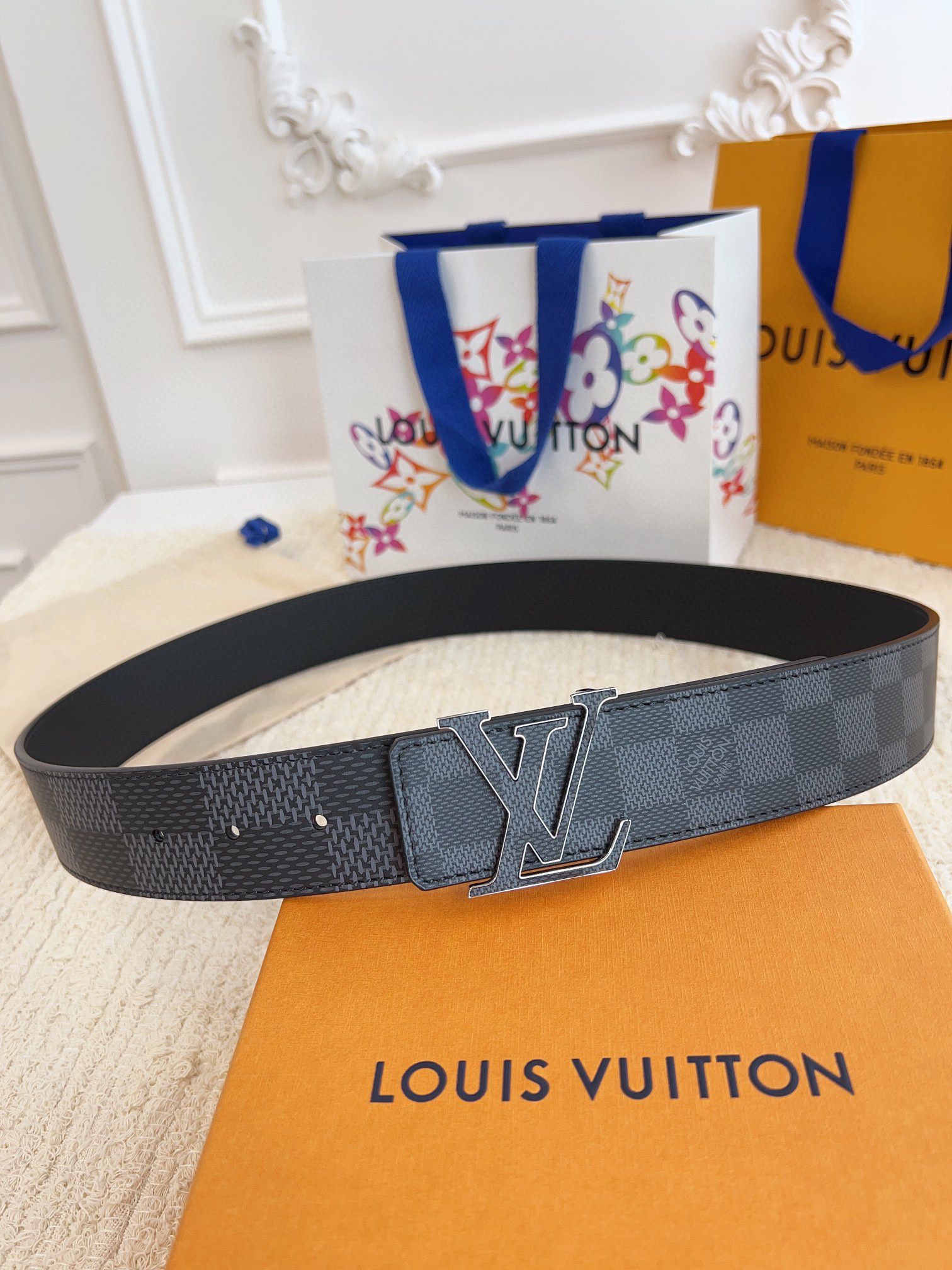 LV路易威登(LOUIS VUITTON)正版开模 此款腰带双面采用意大利原厂定制进口牛皮带身 精密电镀标志性五金搭扣 对版专柜足宽4.0mm