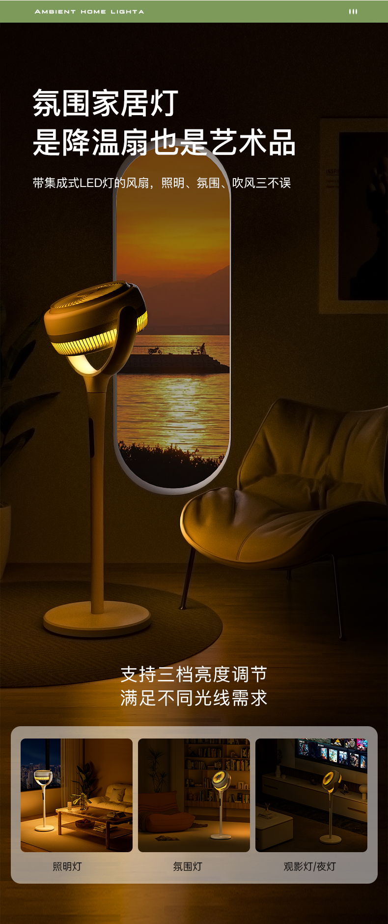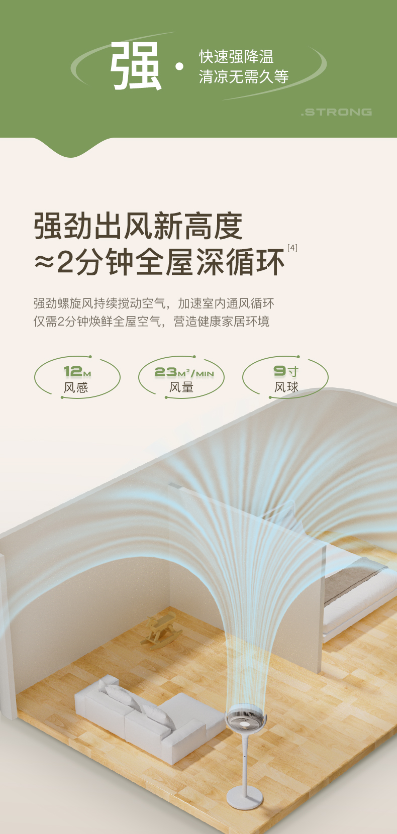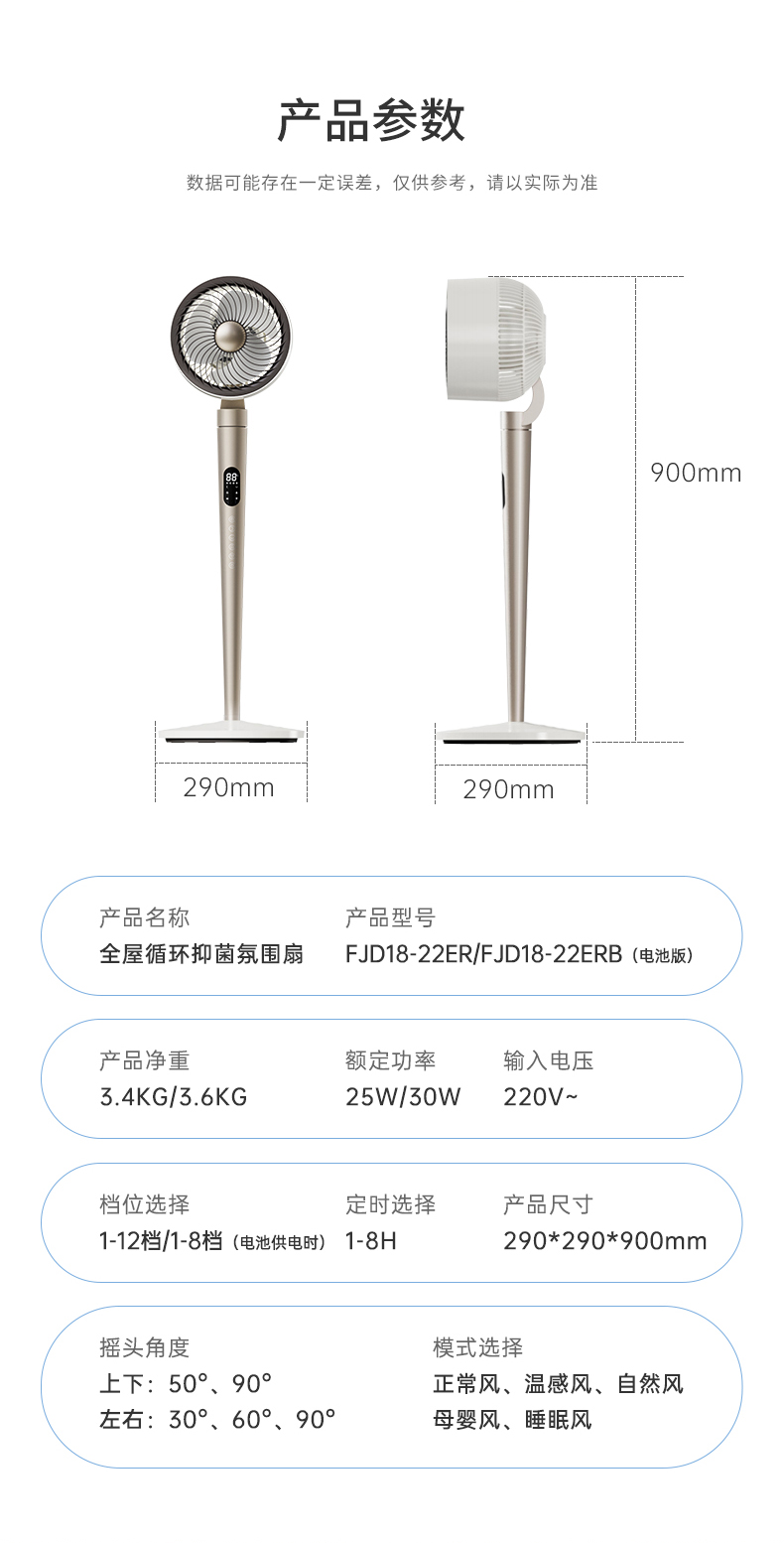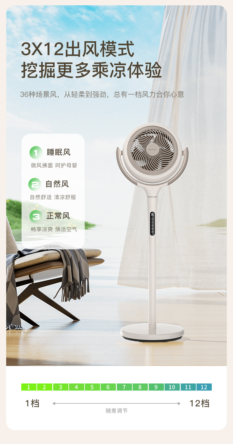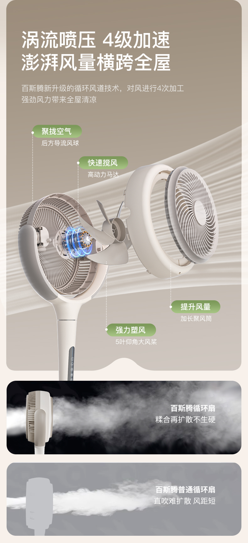 【直流变频静音】百斯腾空气循环扇台式落地两用直流变频静音2024新款家居灯电风扇