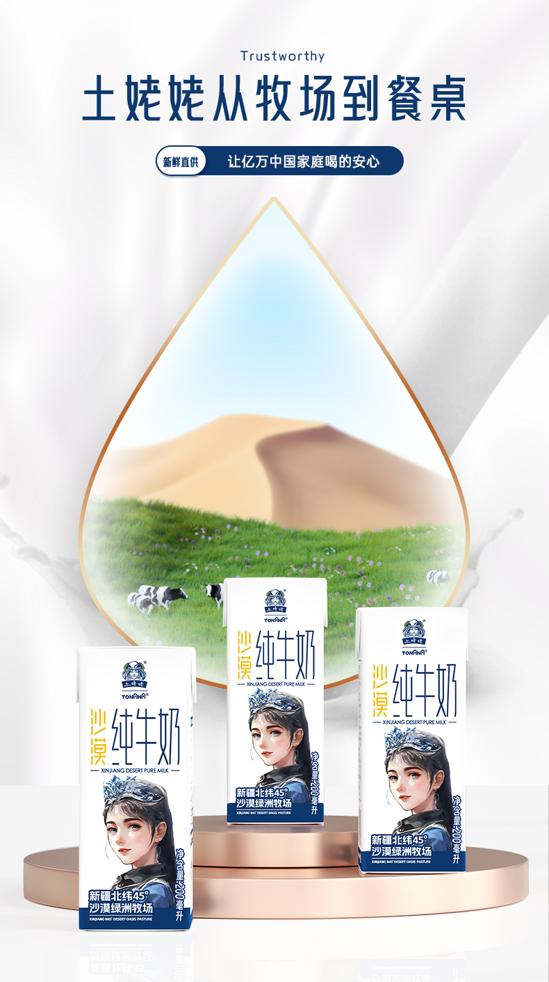 【自营】土姥姥新疆沙漠纯牛奶200ml*10盒