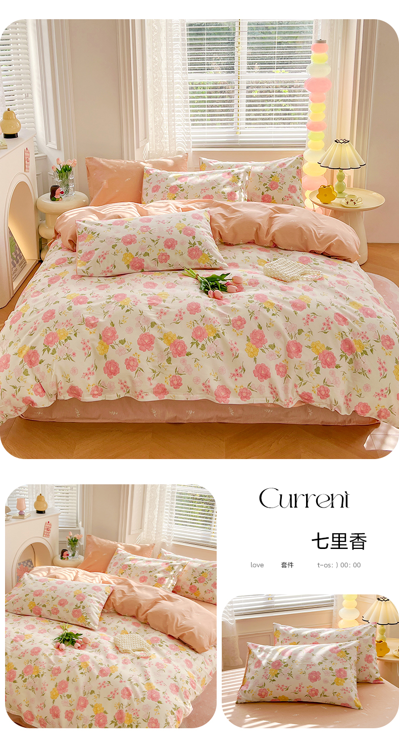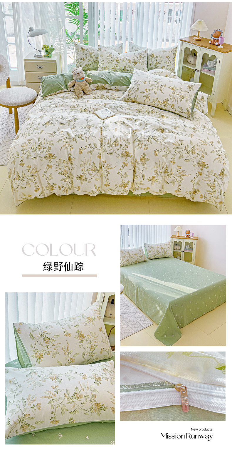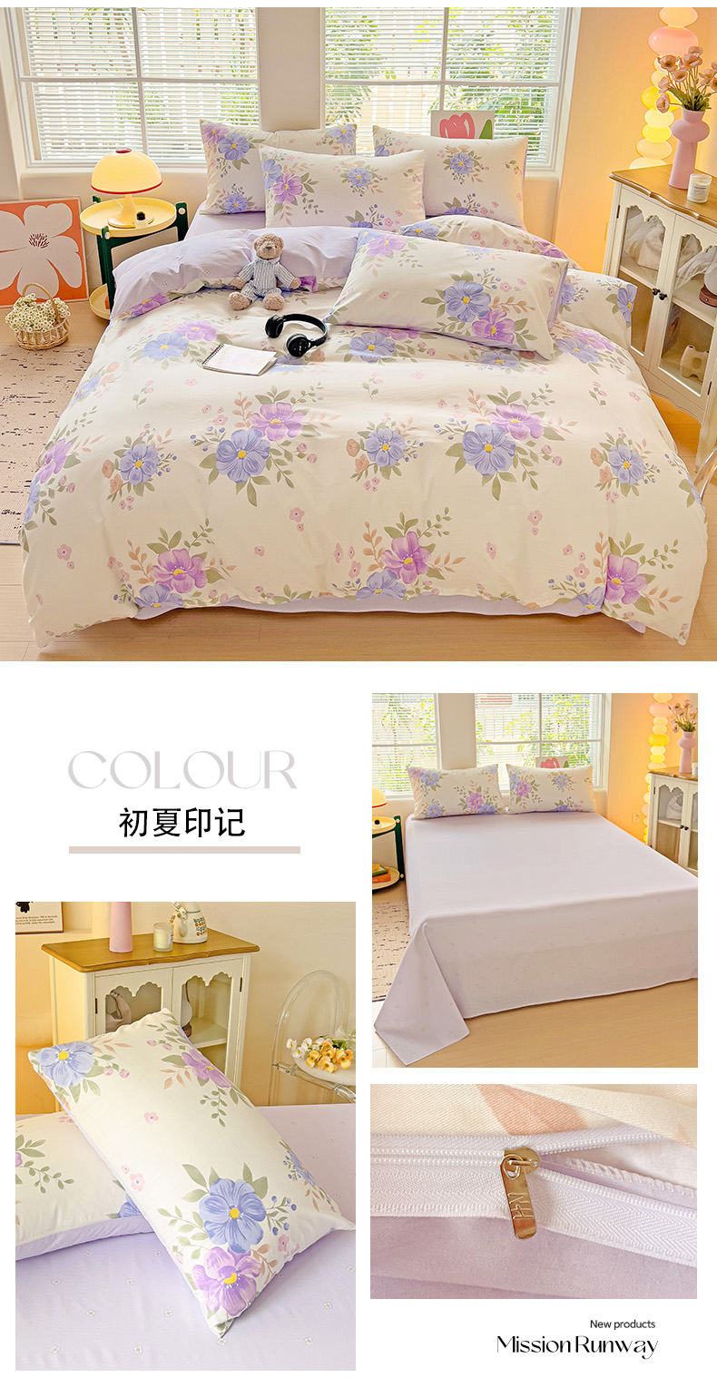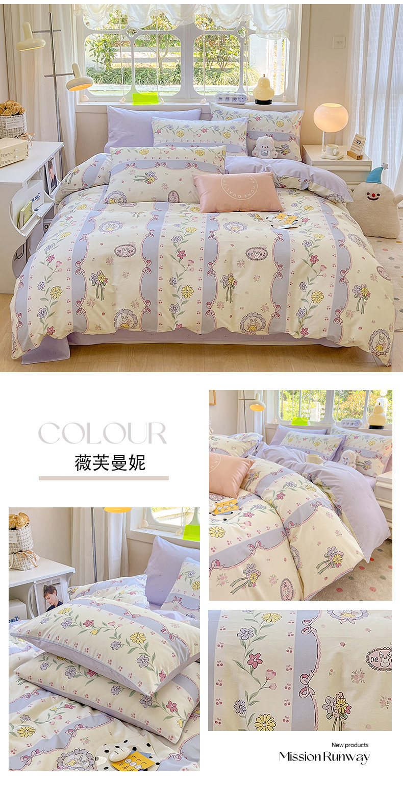 自然醒纯棉床上四件套全棉公主花被套床单宿舍床品三件套女NH149