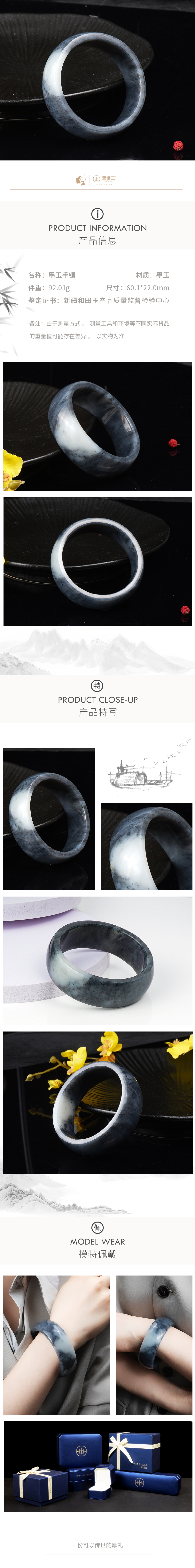 新疆国玉盟世玉和田玉墨玉手镯圈口60【带证书·顺丰物流】