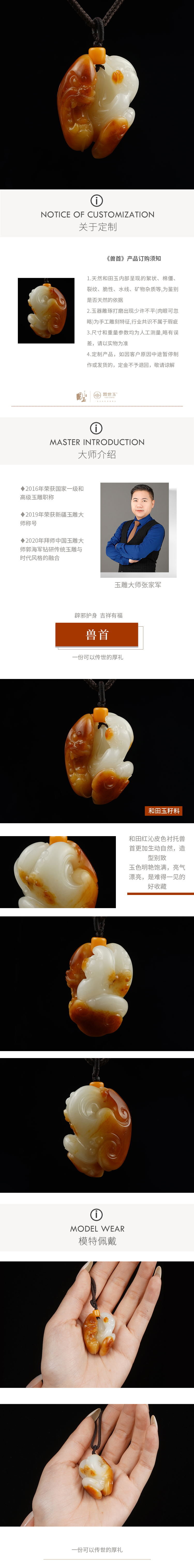 新疆省级玉雕大师张家军高级定制羊脂玉籽料兽首孤品挂件