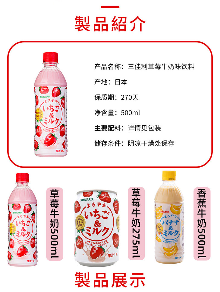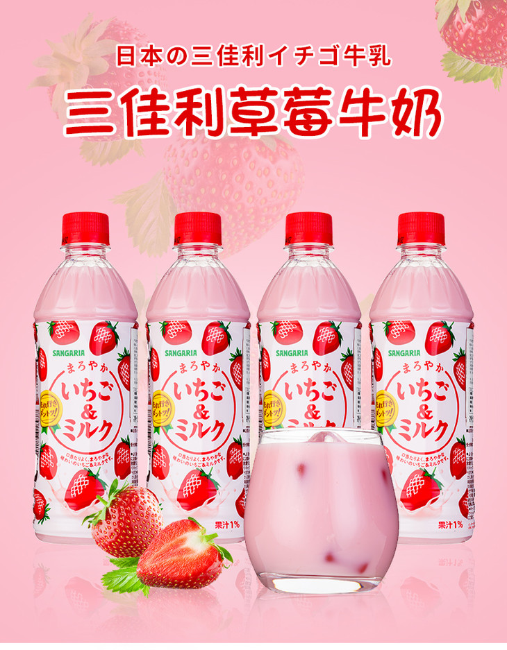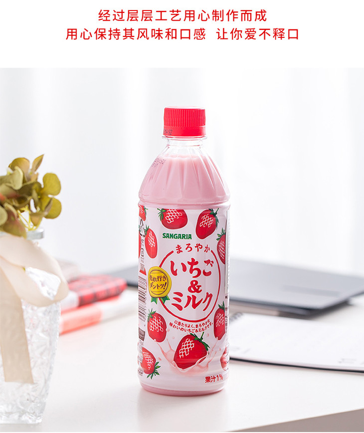 日本进口 SANGARIA三佳丽草莓牛奶饮料 500ml