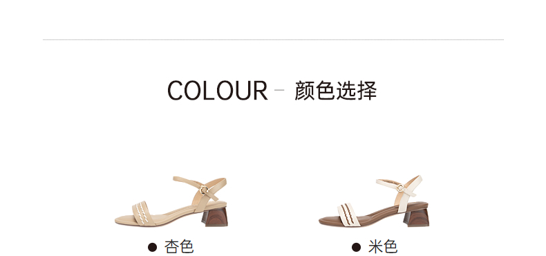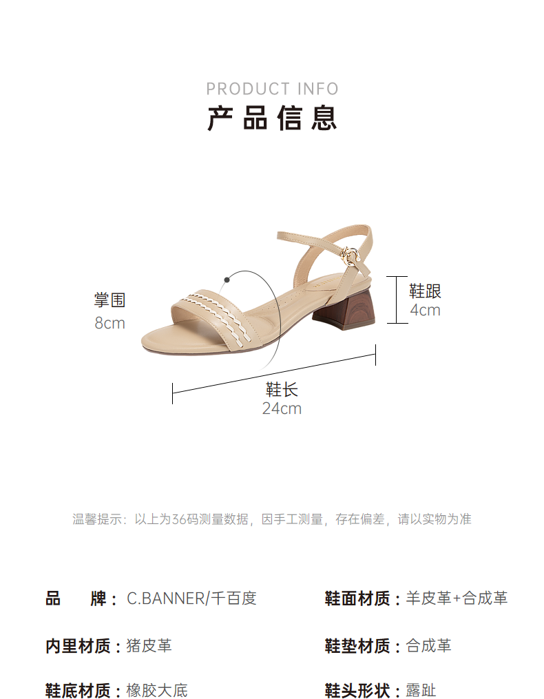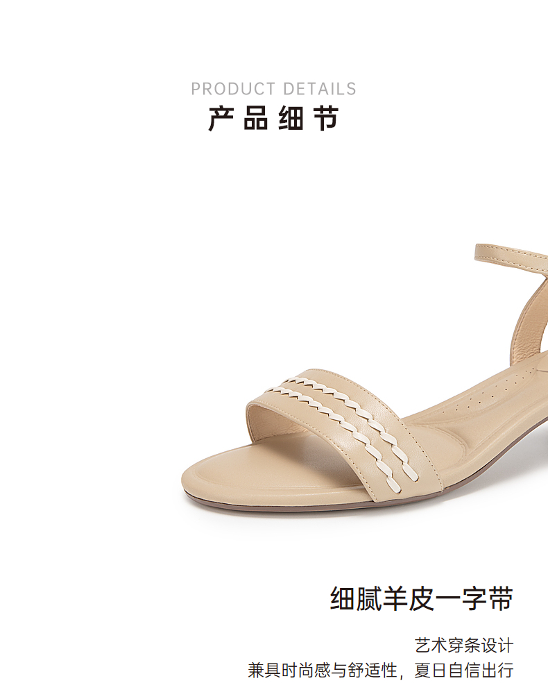 千百度粗跟一字带凉鞋女夏季露趾绝美配裙子凉鞋A24355060