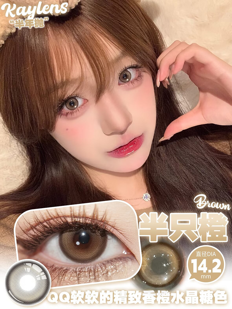 KAYLENS 半只橙 半年抛 两片 14.2mm 参考着色 13.5mm 基弧 8.6 含水 38% 新锐国货