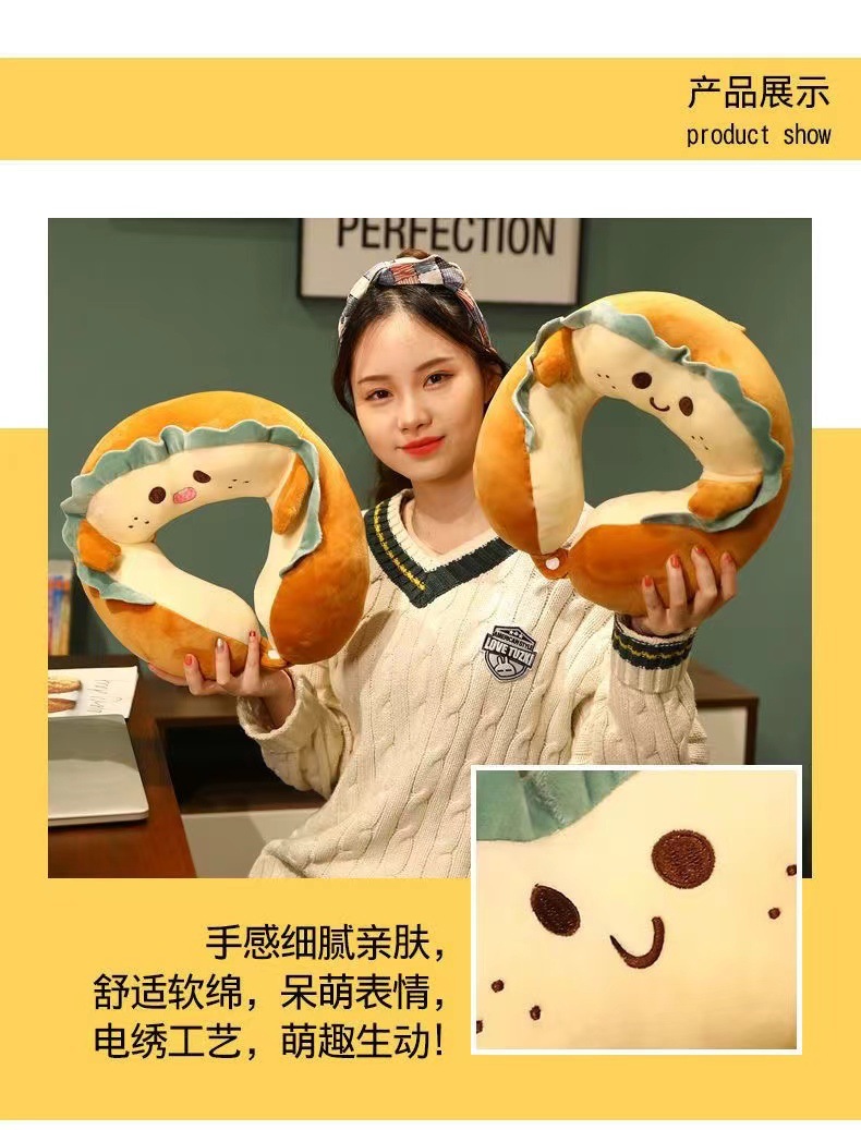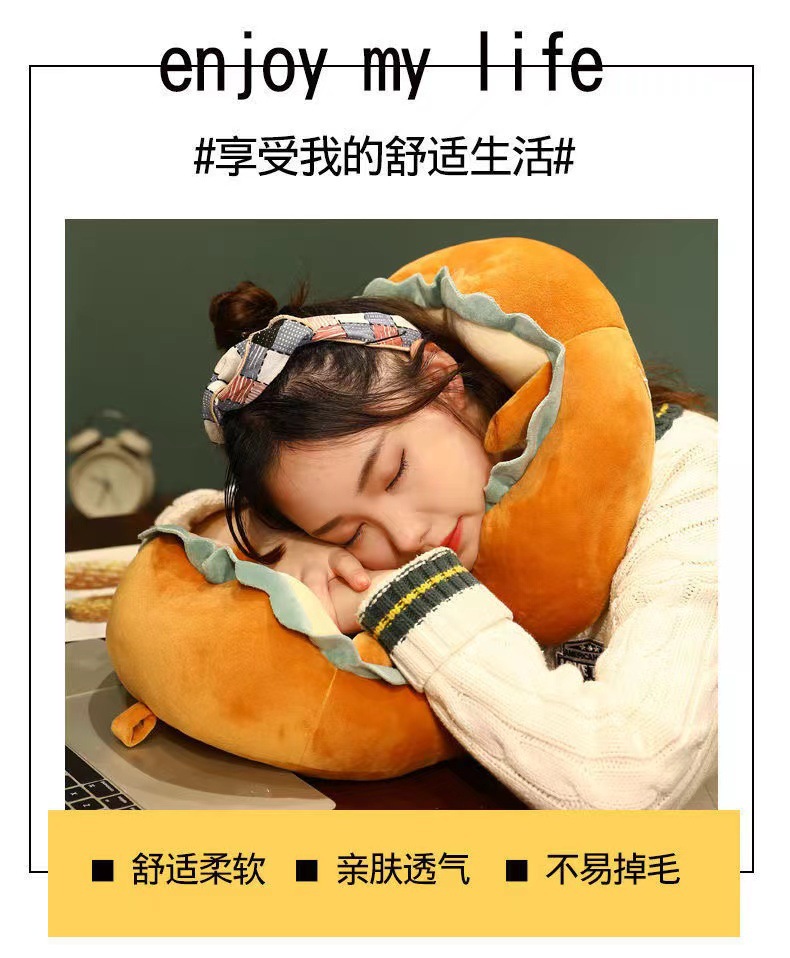 「一枕多用!360°呵护」可爱吐司面包U型颈枕护颈脖子汽车用旅行便携U形枕头颈椎靠枕女居家布艺