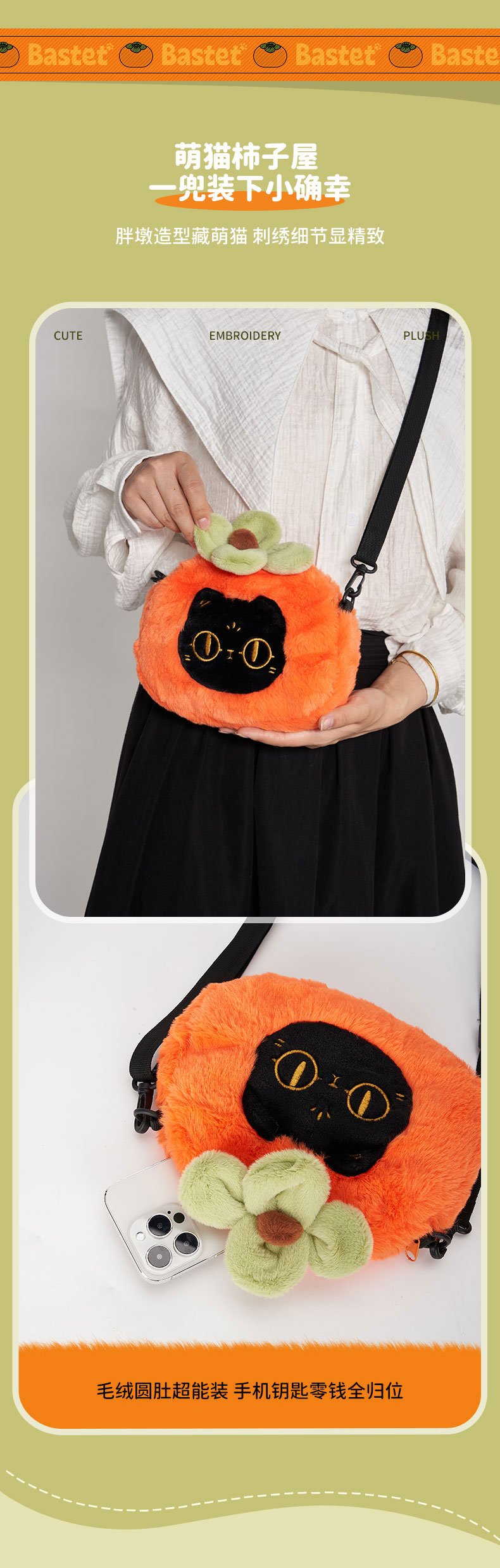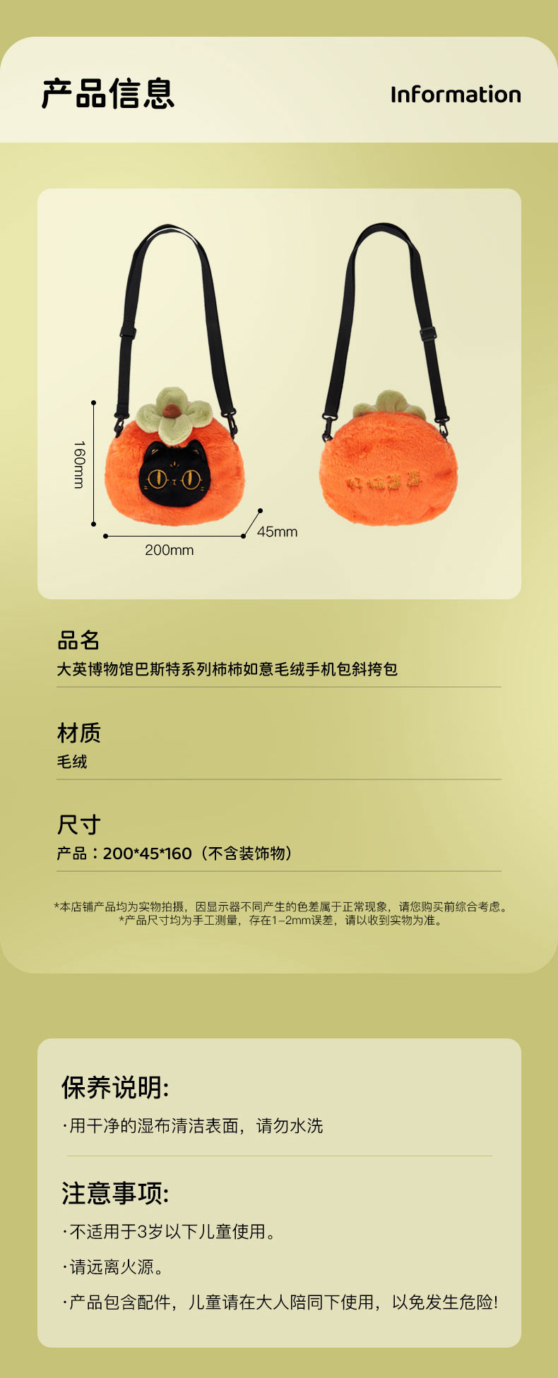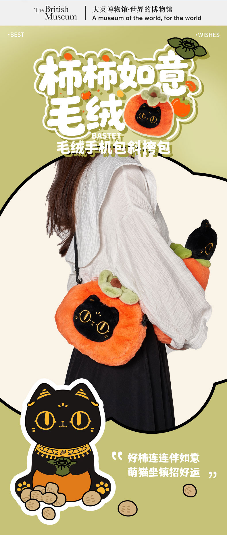 大英博物馆 巴斯特系列 柿柿如意毛绒手机包 斜挎包