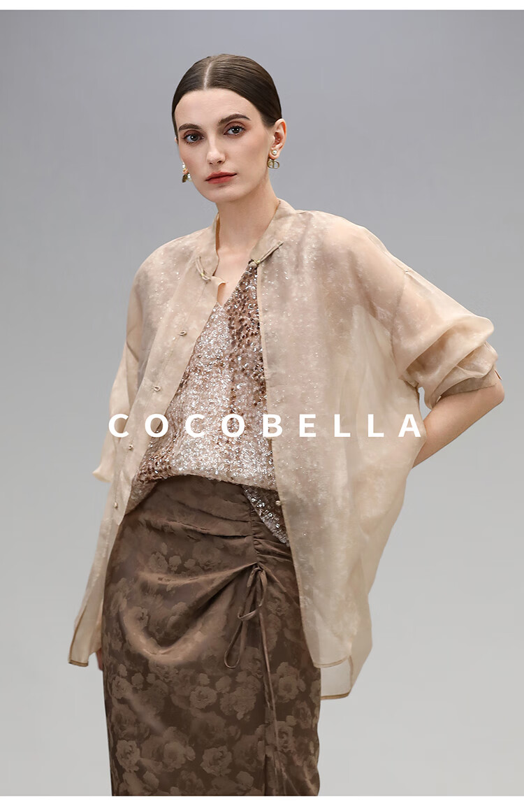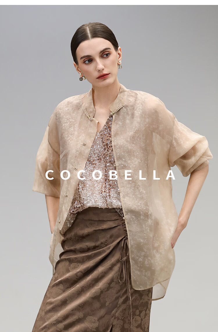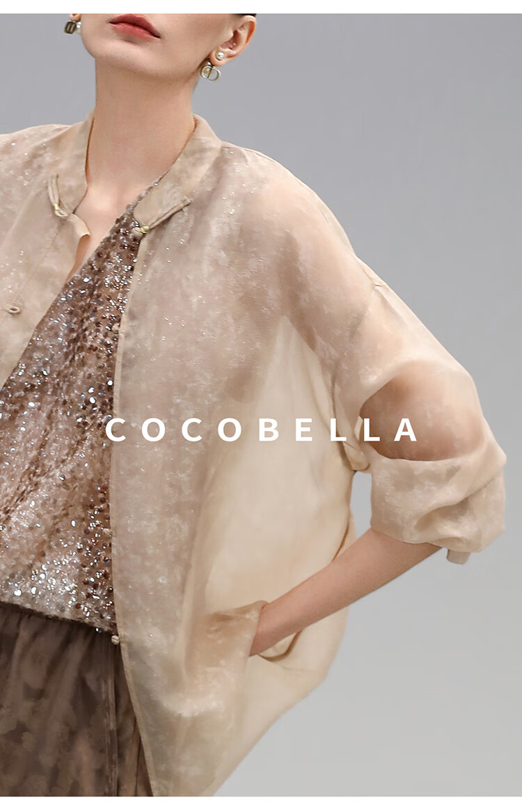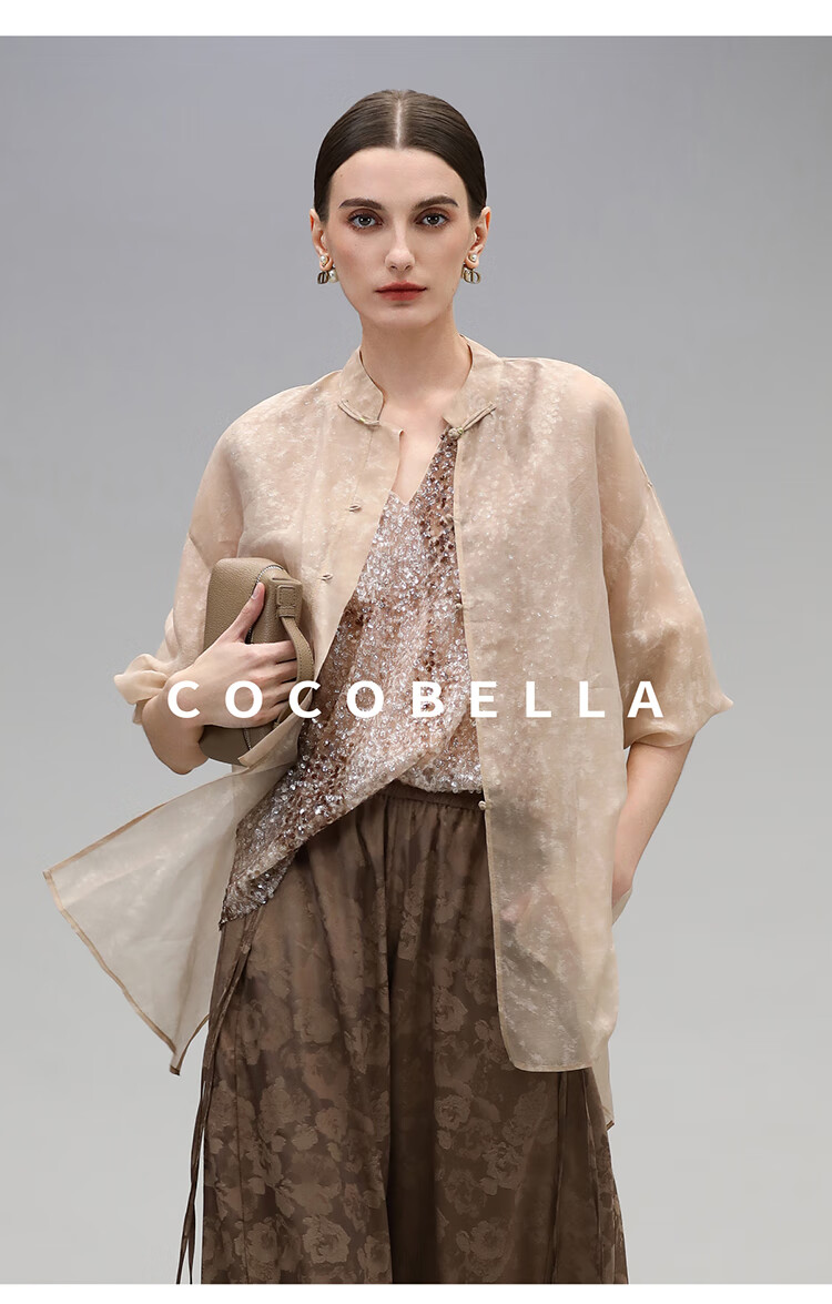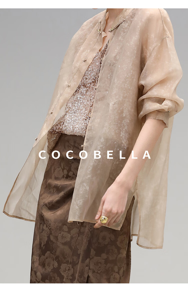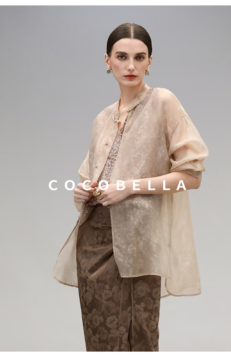 COCOBELLA新中式手工盘扣衬衫暗纹人丝国风衬衣开衫SR0036-5