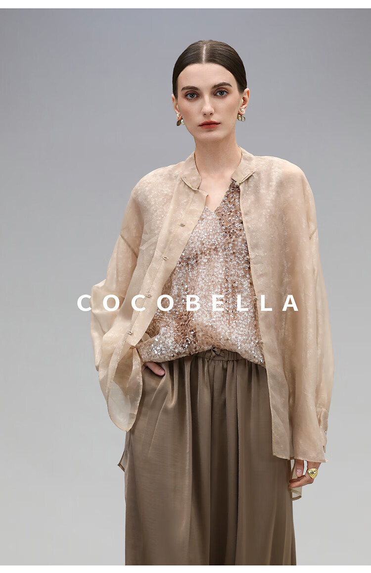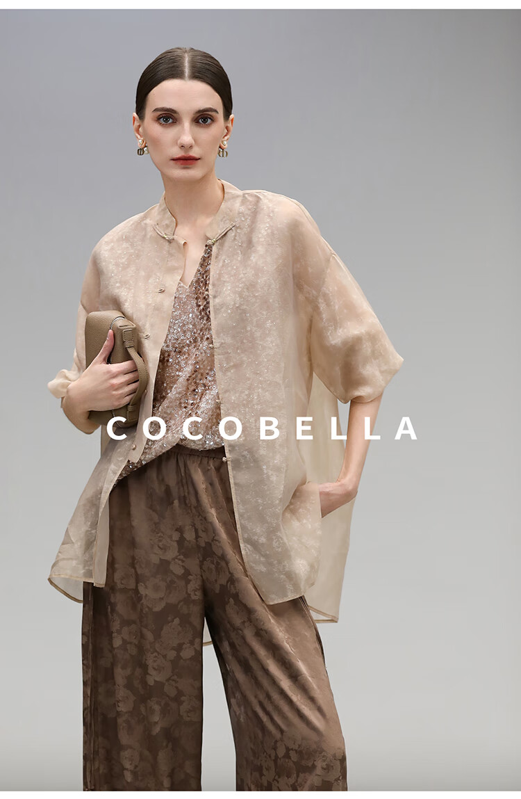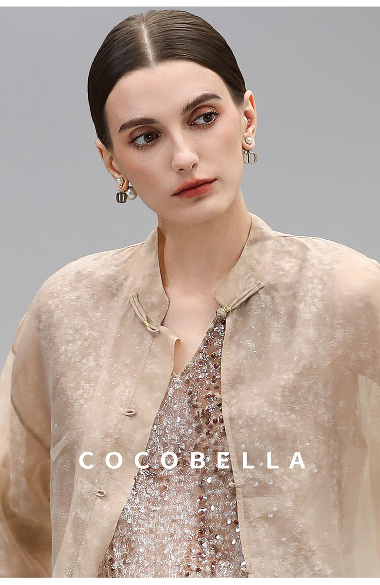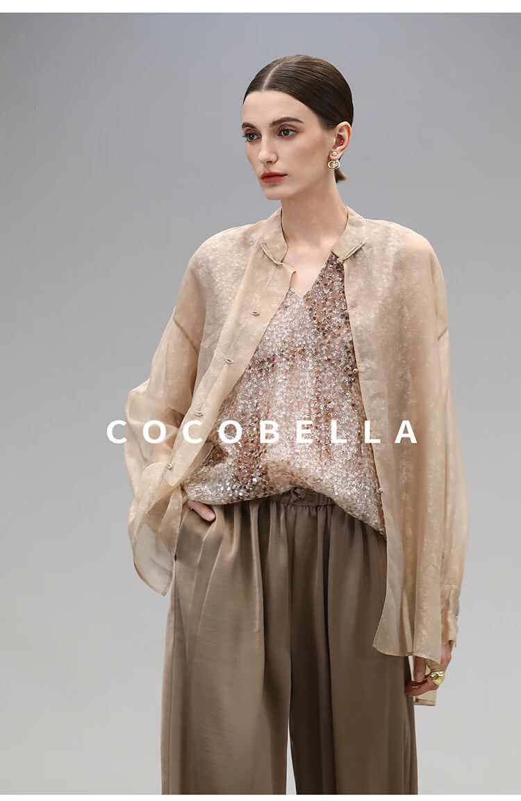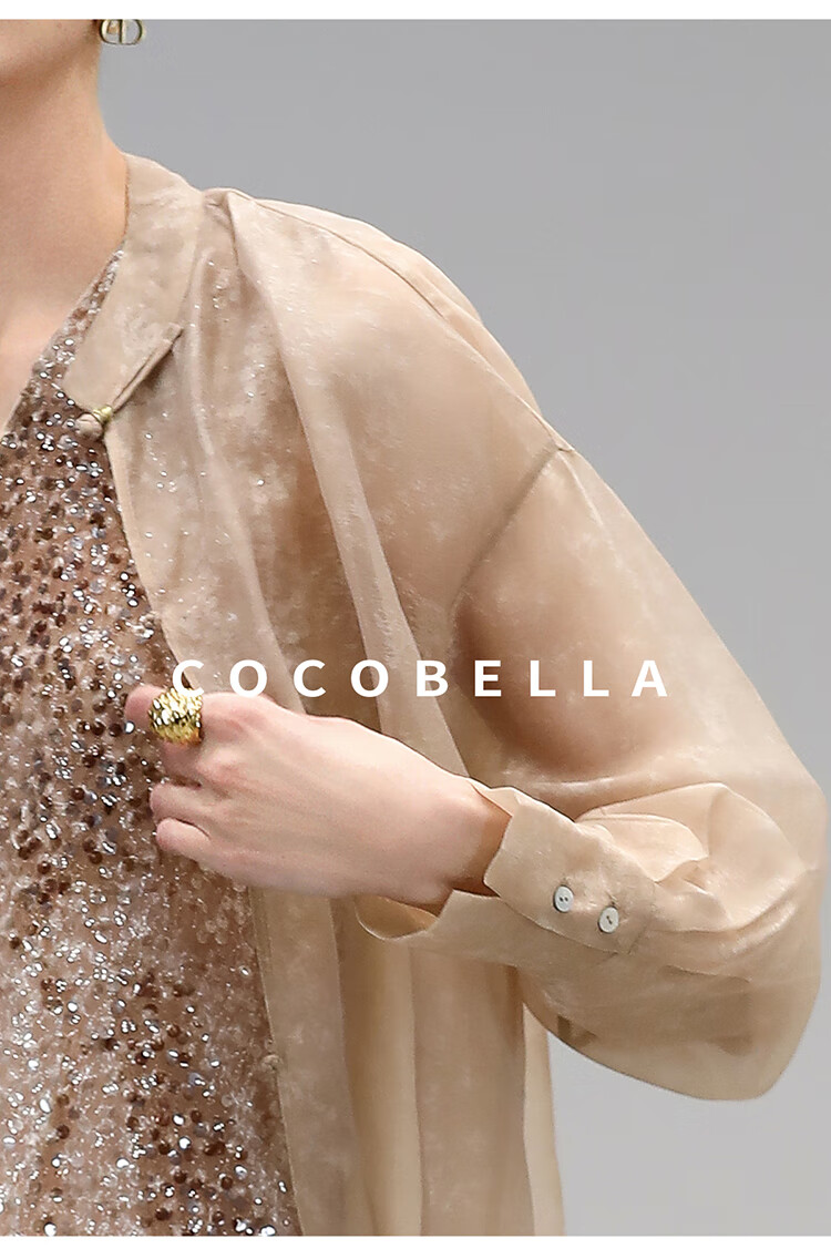 COCOBELLA新中式手工盘扣衬衫暗纹人丝国风衬衣开衫SR0036-5