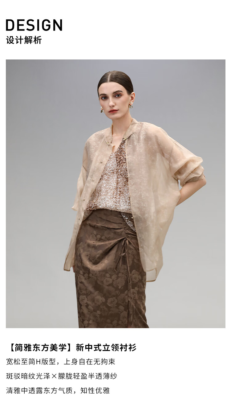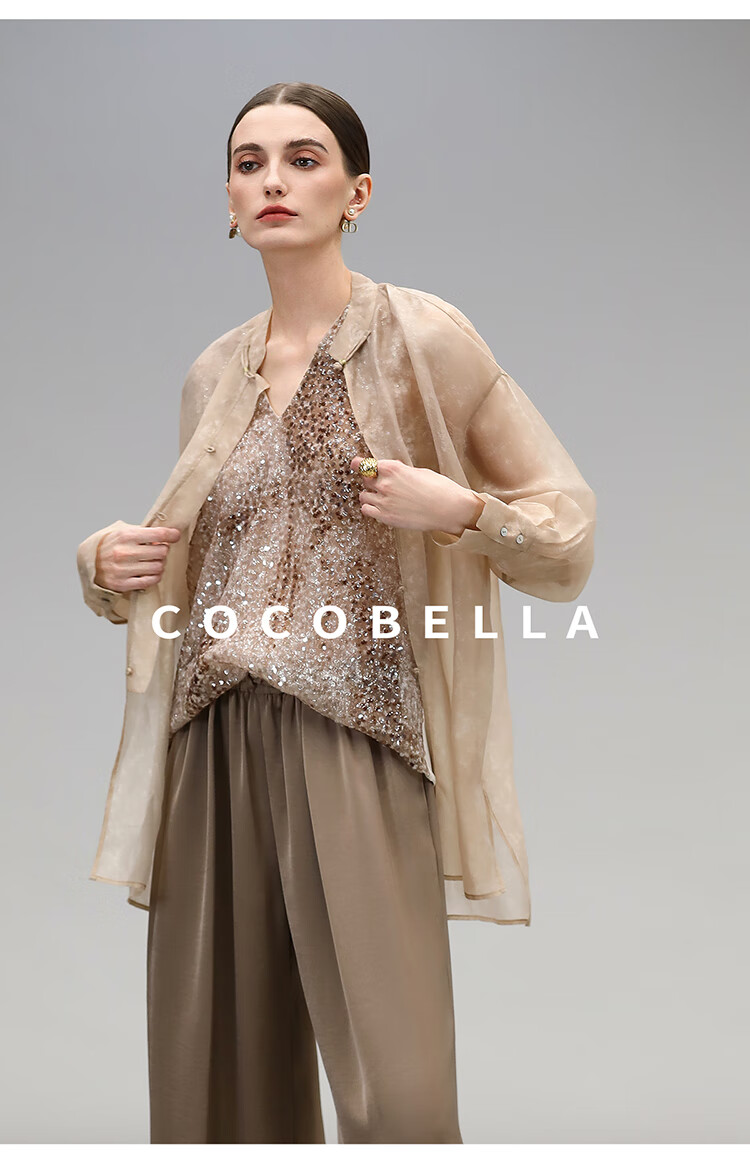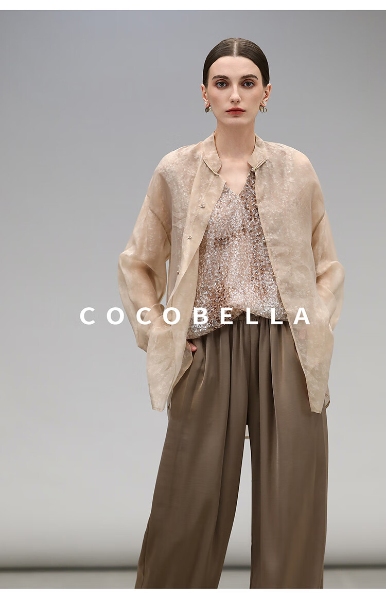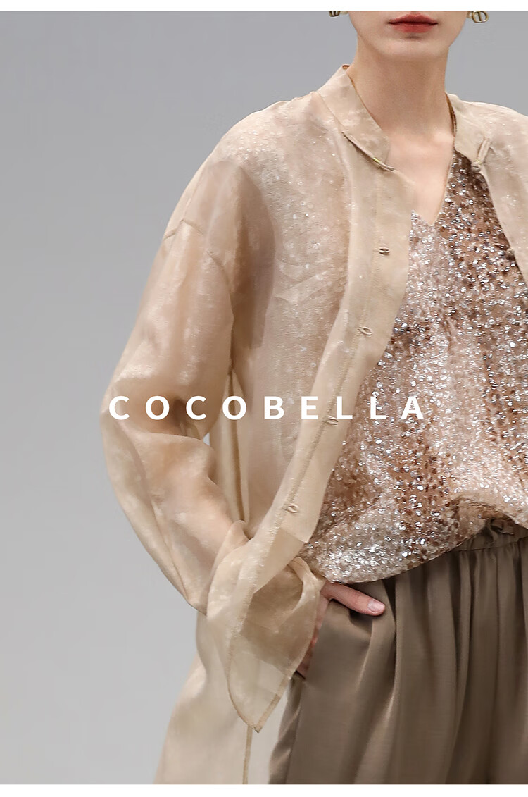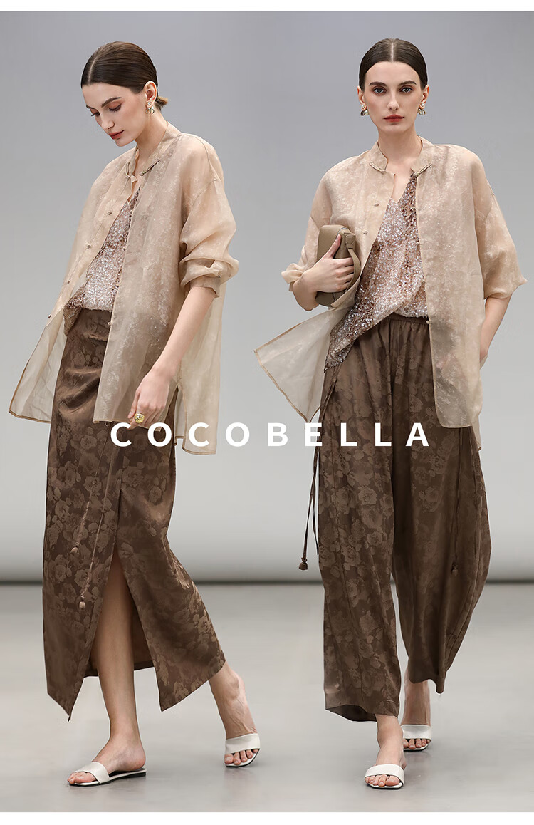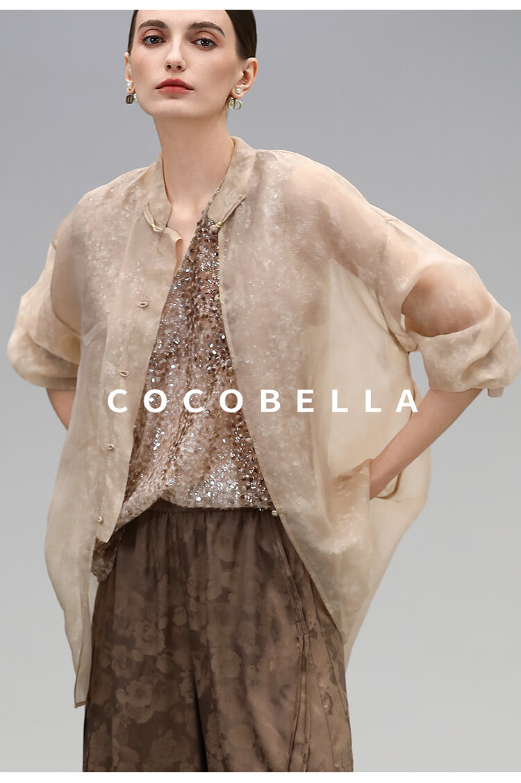 COCOBELLA新中式手工盘扣衬衫暗纹人丝国风衬衣开衫SR0036-5