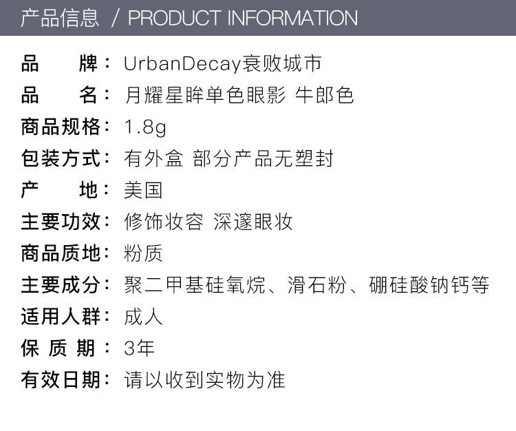 【海豚美购】美国URBAN DECAY衰败城市 月耀星眸单色眼影1.8g/盒 SPACE COWBOY牛郎色