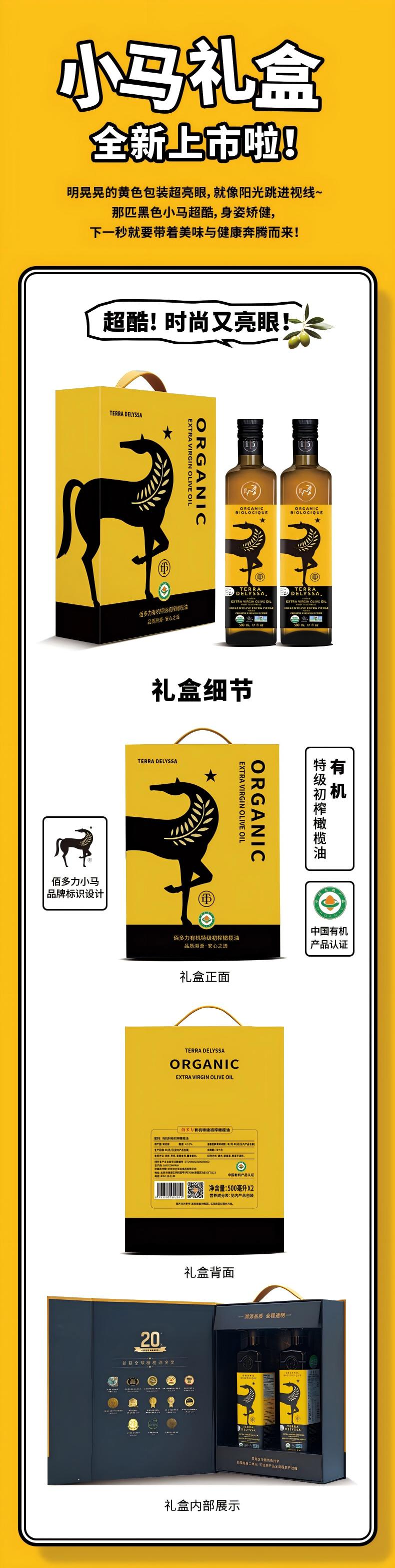 佰多力有机初榨橄榄油500ml*2礼盒