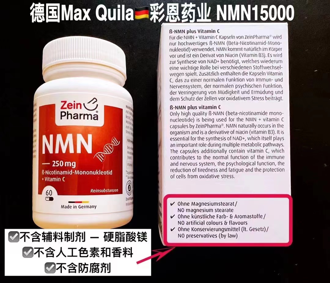 产品规格:每瓶60粒,每粒含250 毫克NMN、100毫克维生素C