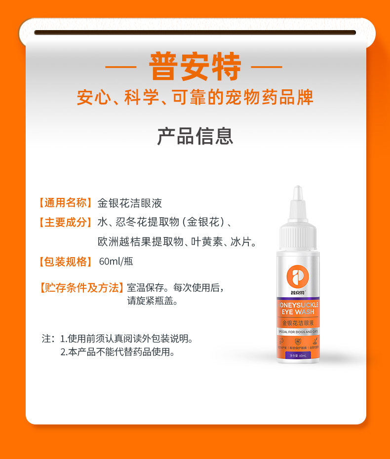 【49元任选3件】普安特金银花洗眼液宠物猫咪去除眼屎眼水狗狗眼睛清洁泪痕闪晶1瓶