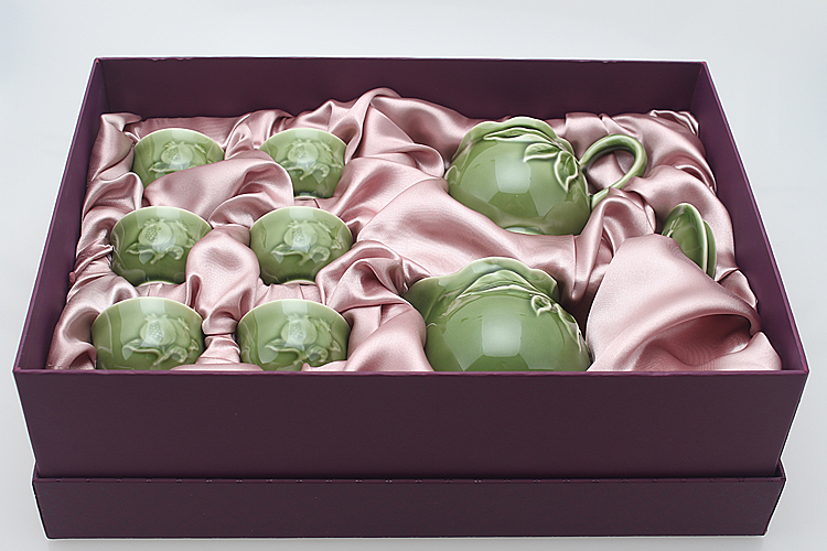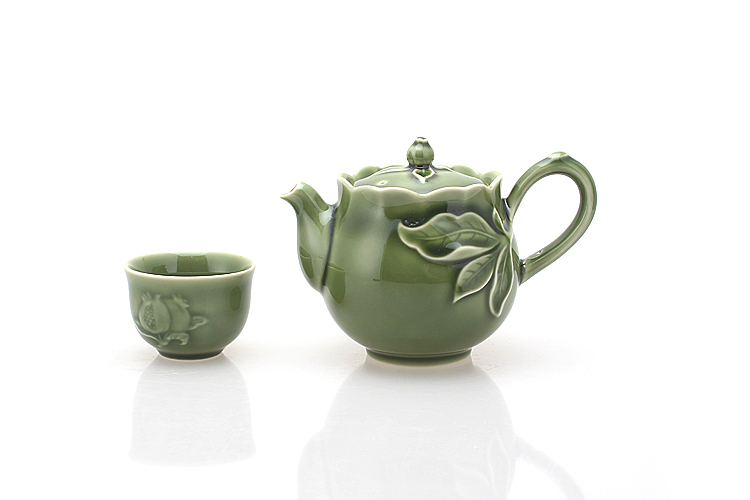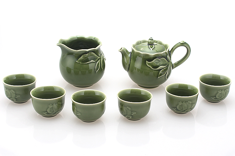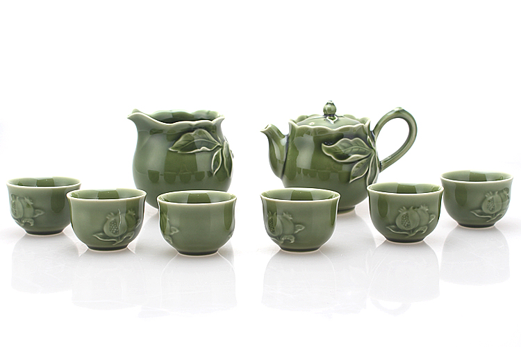 乾唐轩活瓷新石榴绿茶具1壶6杯+茶海茶杯水杯功夫茶具中式高档礼盒套装