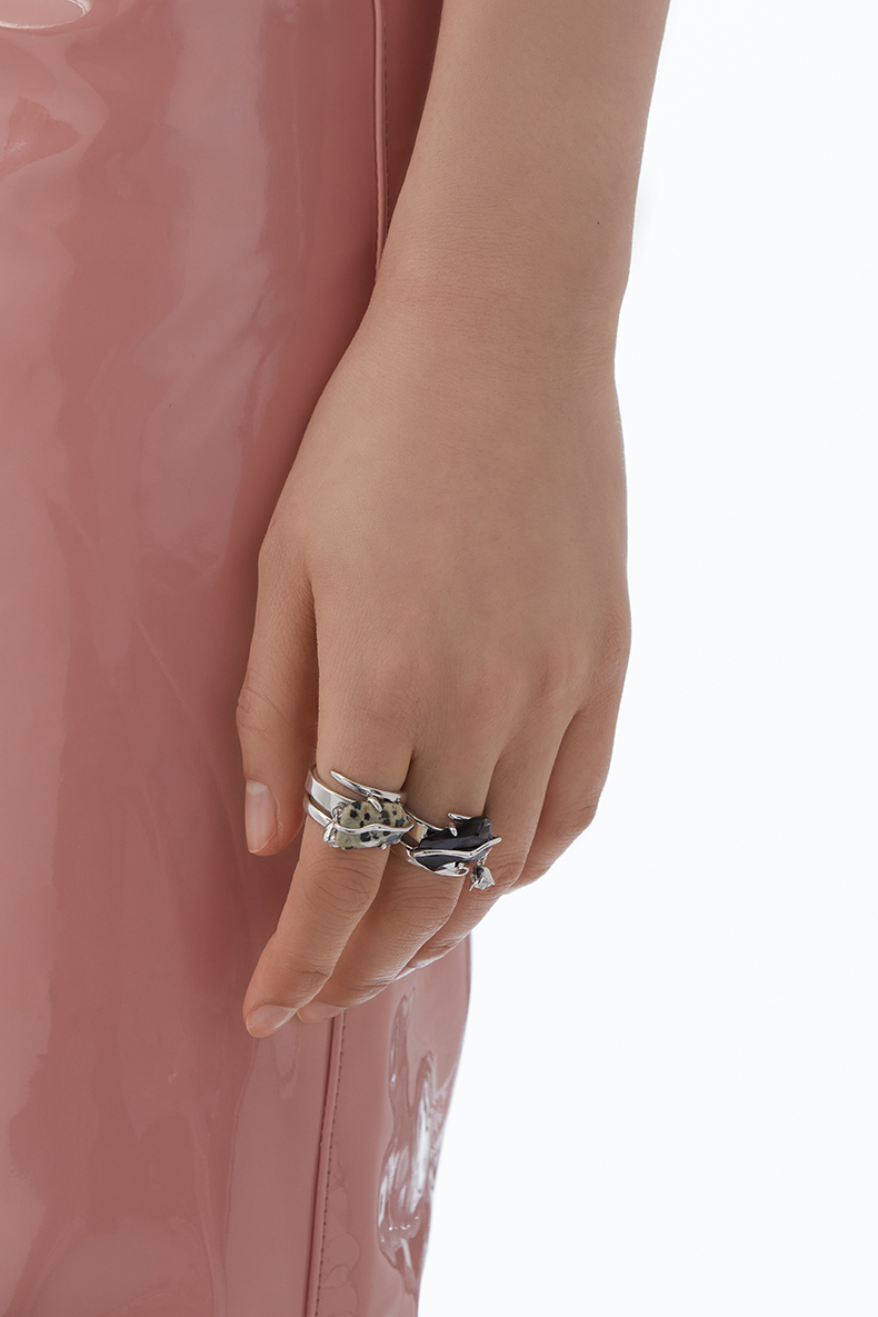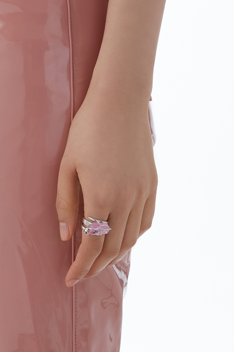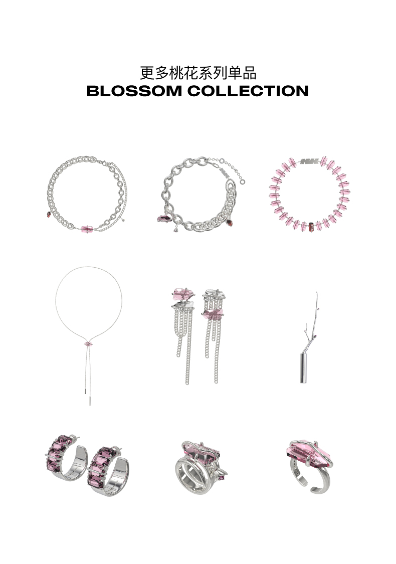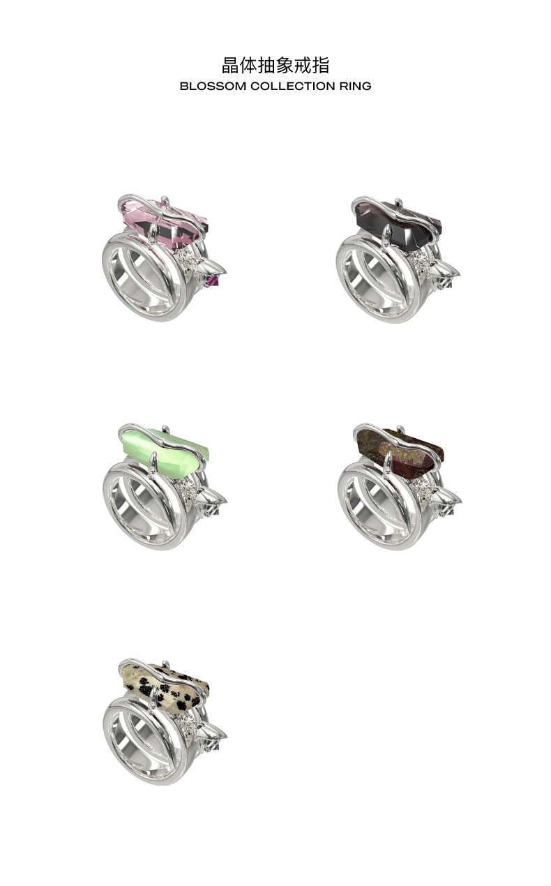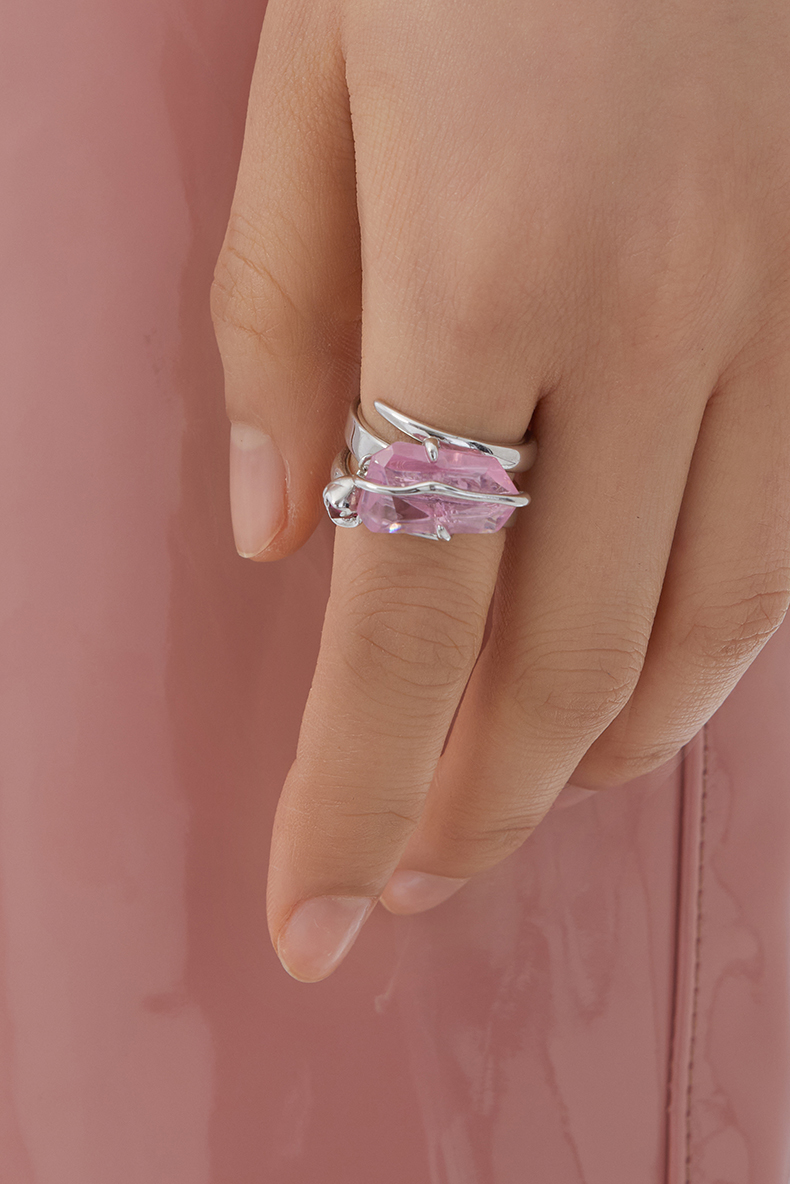KVK戒指女夏925银时尚个性桃花晶体抽象轻奢小众精致素圈戒指