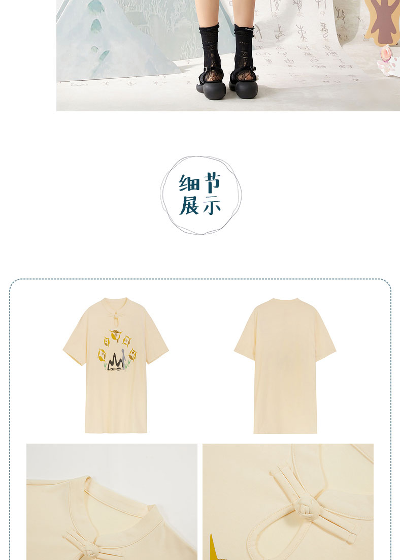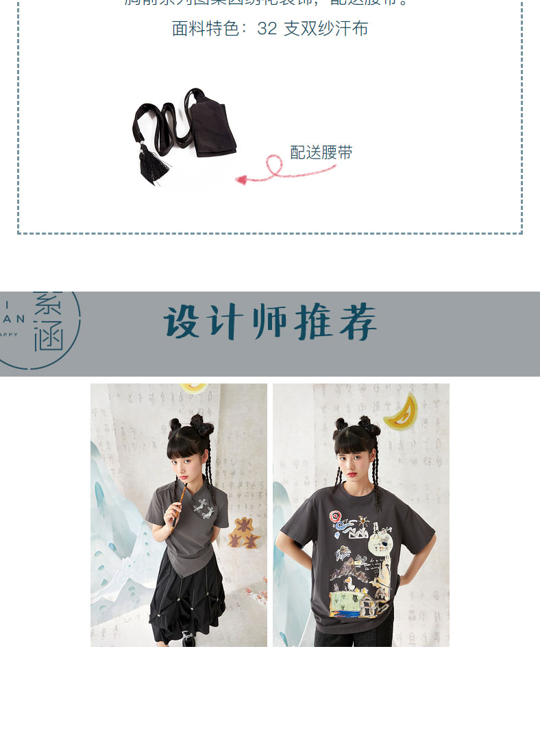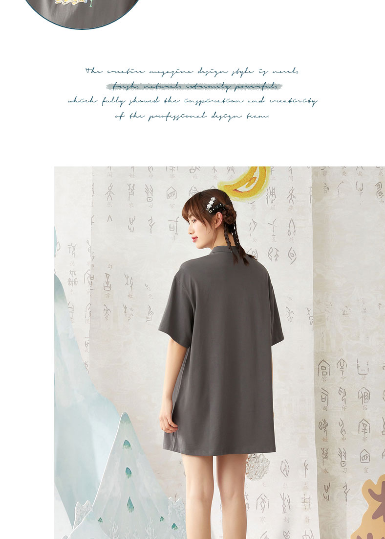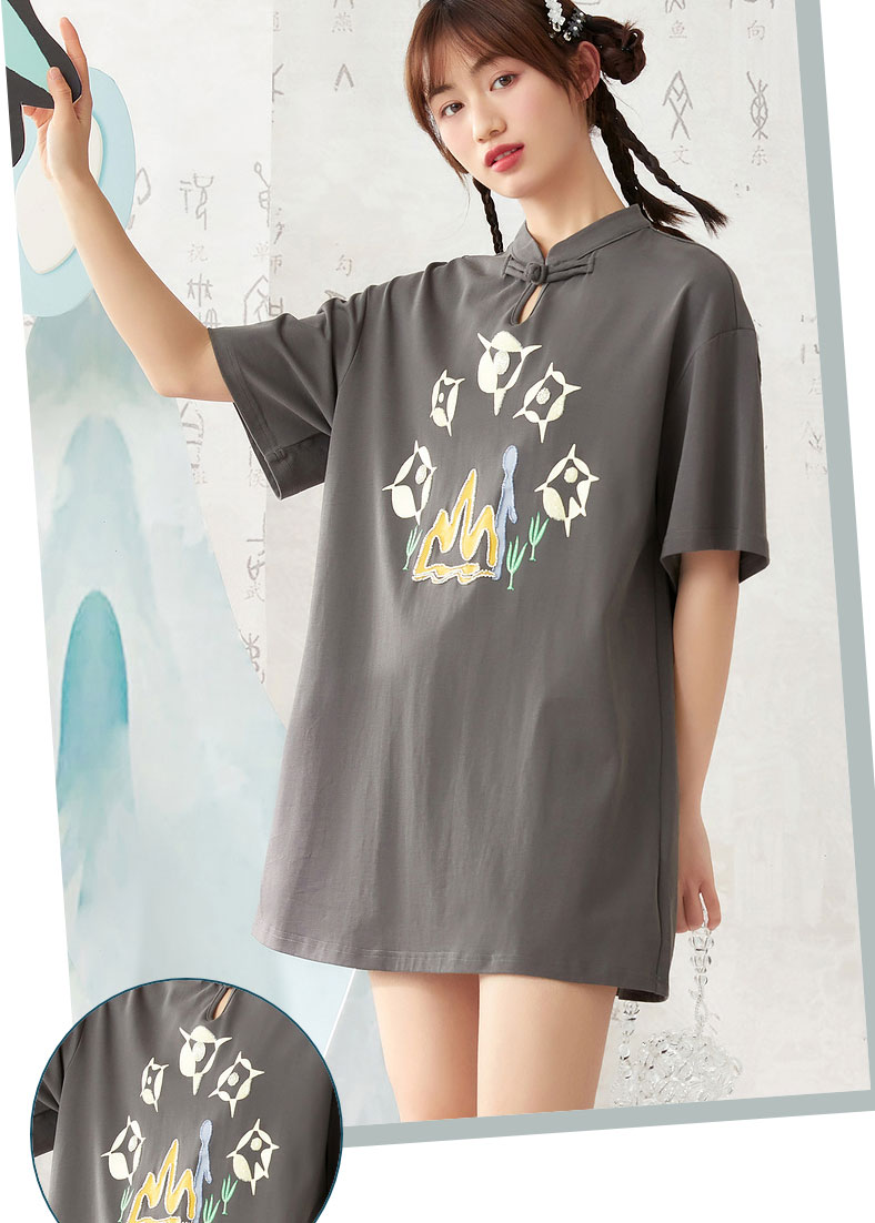 ZIHAN紫涵国风改良T恤裙女2022夏新款立领印花休闲大码裙子附腰封日系Z2Z03DS012