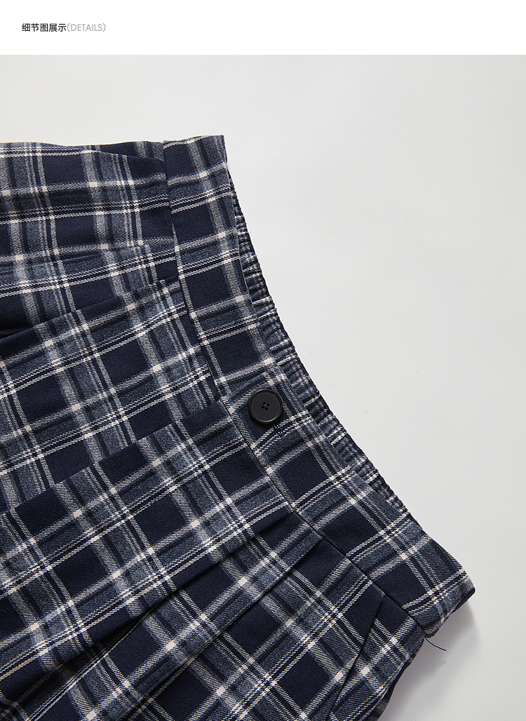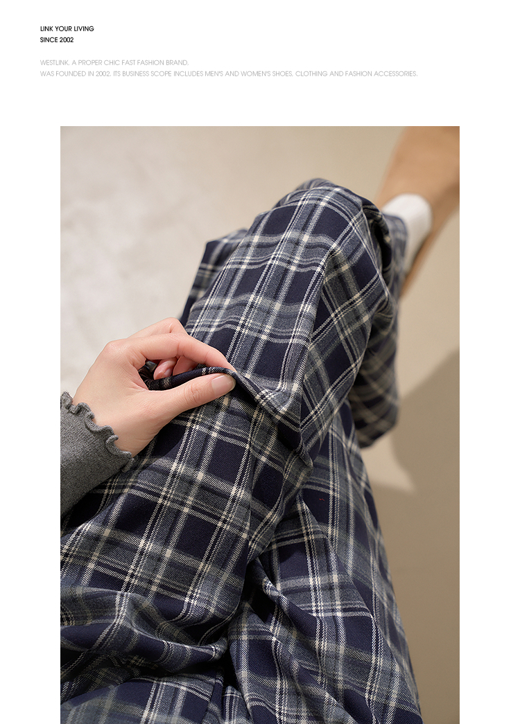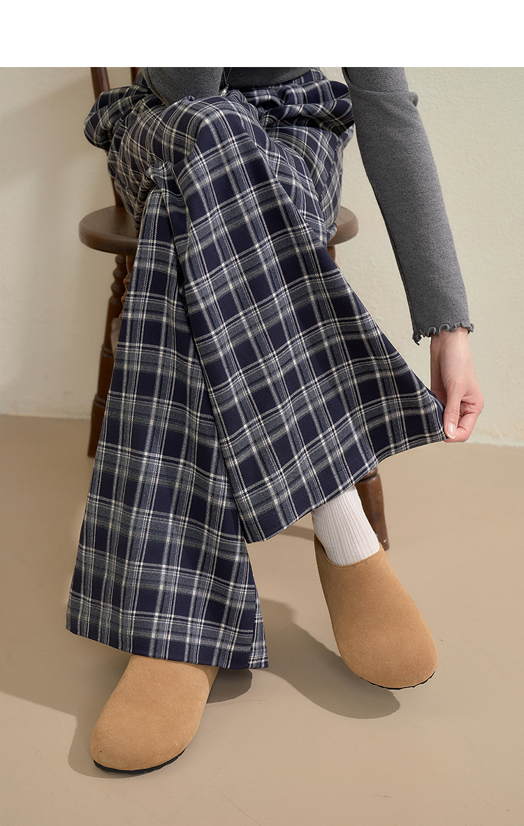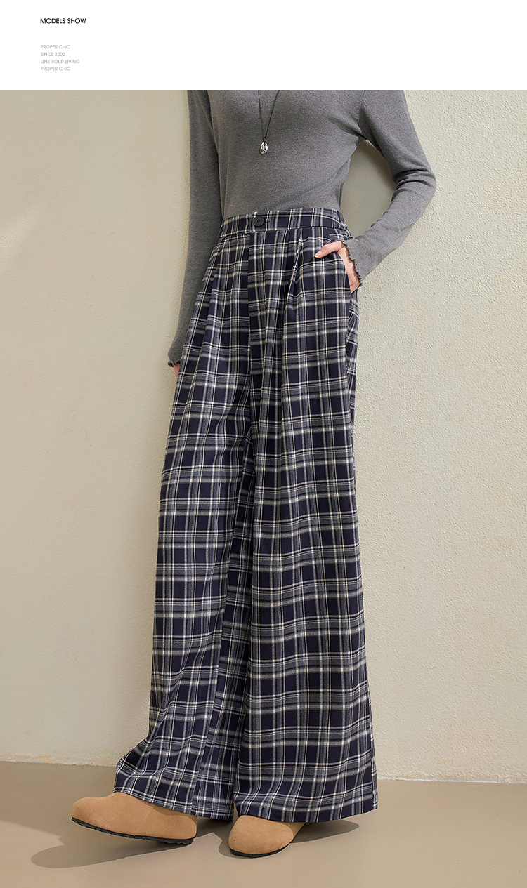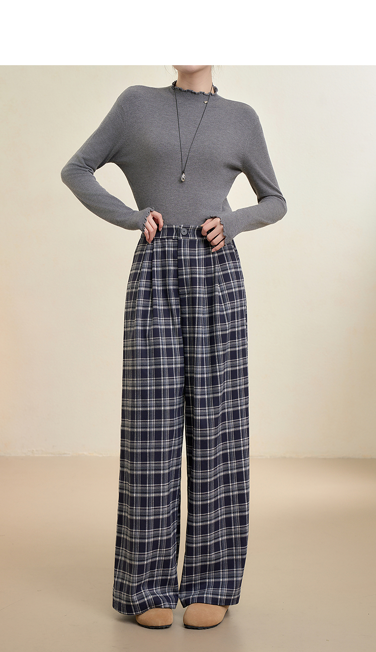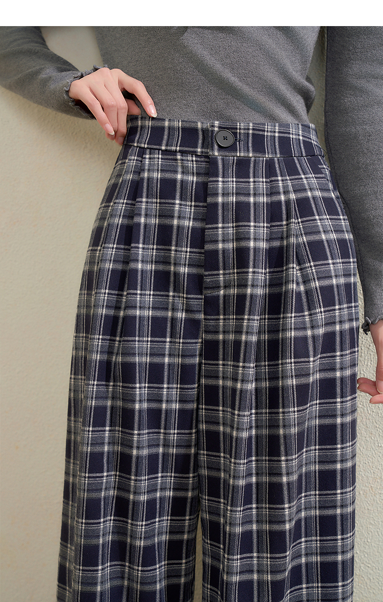 西遇格子休闲裤女秋季新款复古高腰宽松显瘦直筒阔腿裤长裤V3051286