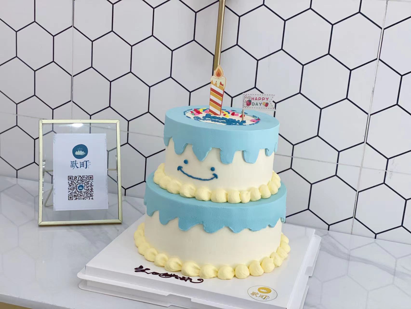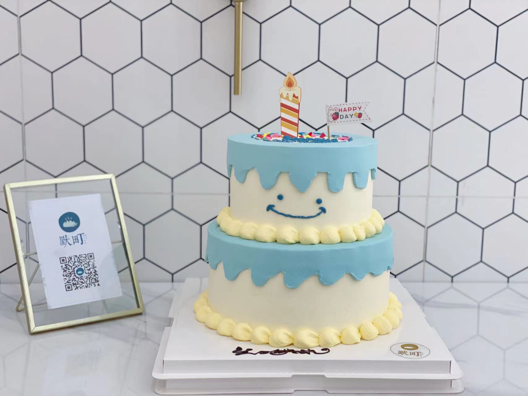 双层·清新脱俗浅蓝ins蜡烛造型双层蛋糕