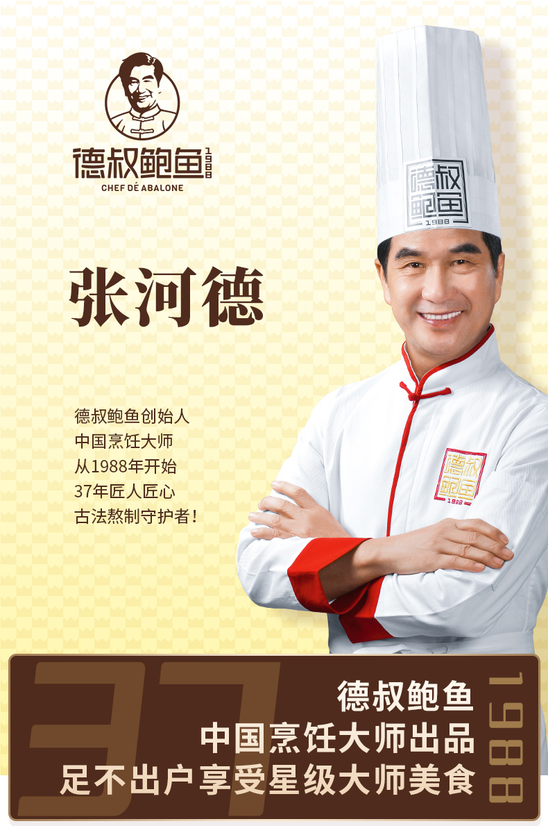 德叔鲍鱼官方商城,客服热线:4006111977 德叔鲍鱼创始于1988年,专注鲍鱼研究34年。线下粤菜餐厅,主打溏心干鲍,荣获米其林和黑珍珠等称号。线上全平台推广,本商城提供微信端的便捷购买。